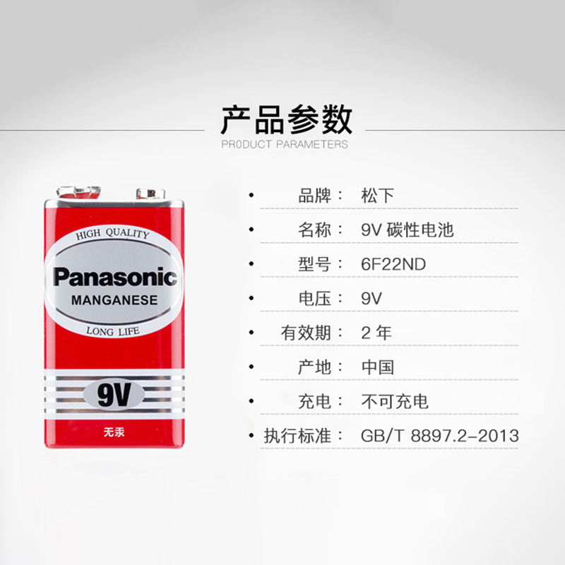 松下9V电池方块电池6F22 万用表通用型叠层碳性无线话筒烟雾报警器方形九伏9伏大批发吉他拾音器音响用