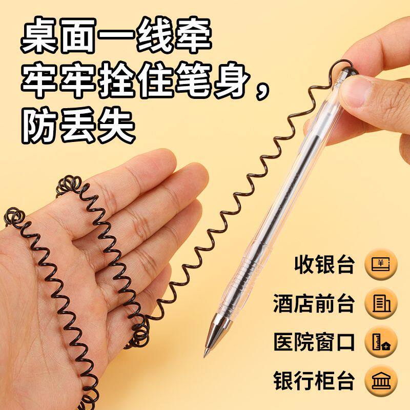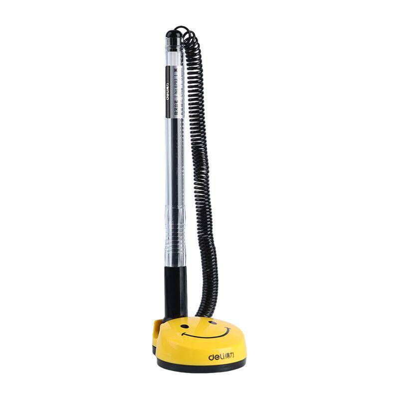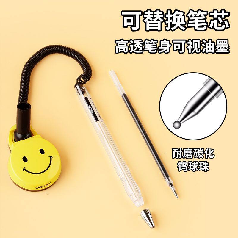 得力台笔桌面固定带线防丢中性笔酒店银行前台柜台吧台商务签字笔吸盘笔粘在桌子上的笔可粘桌笔座办公桌台笔