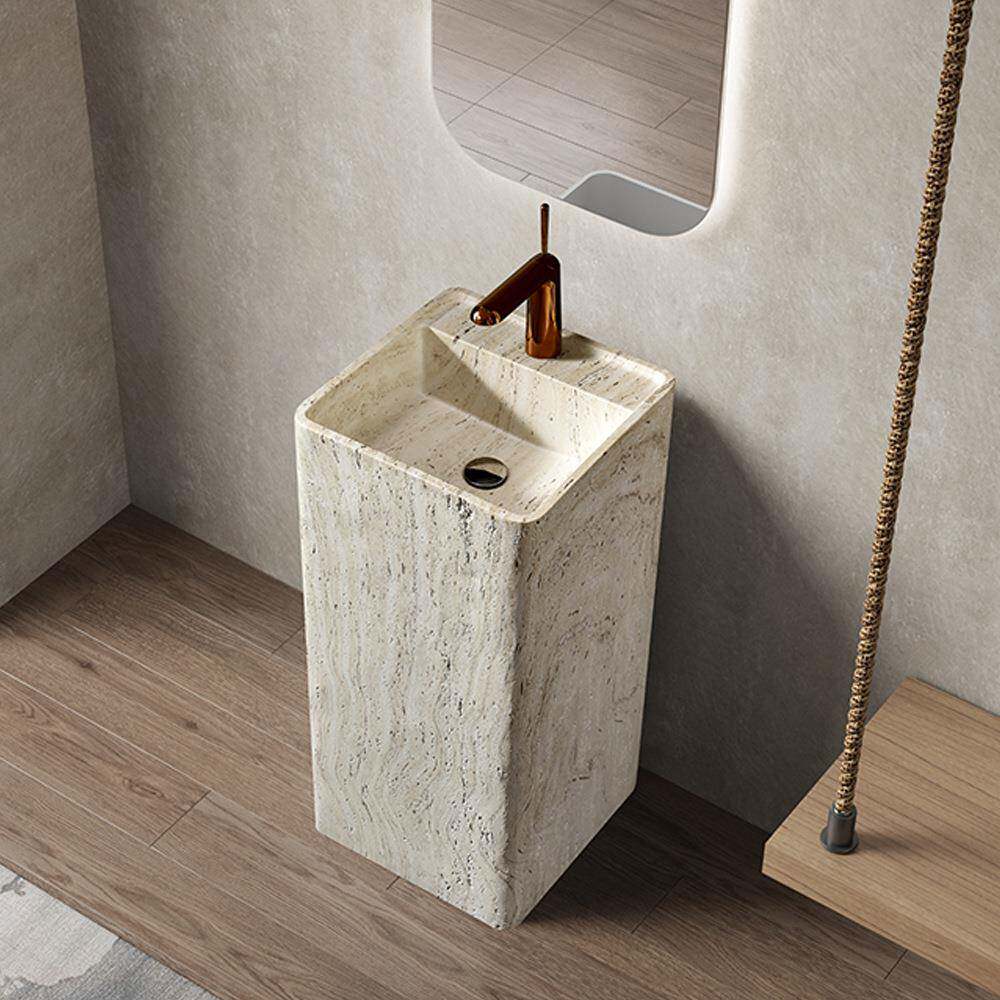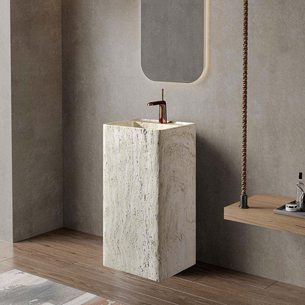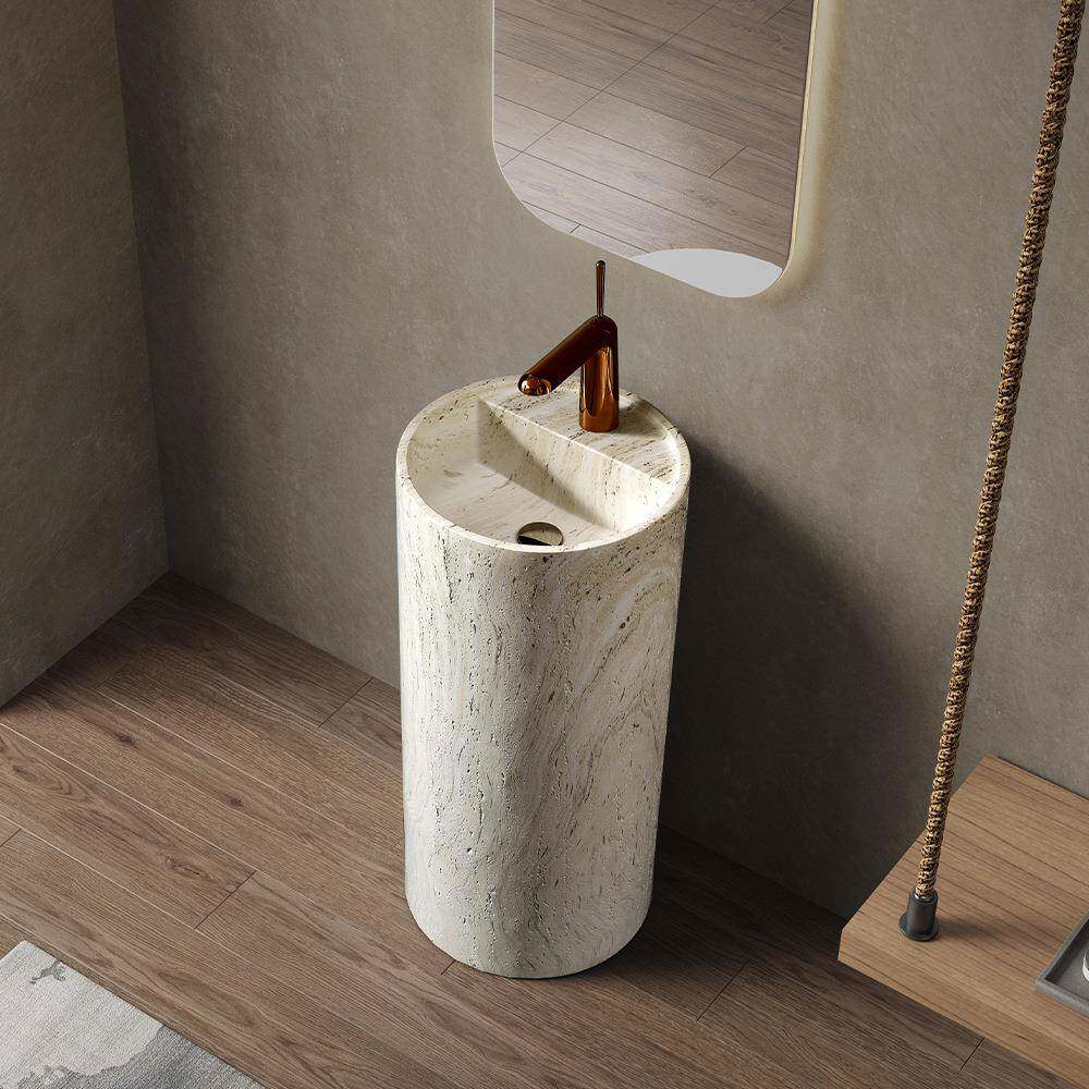 人造洞石极简立柱盆一体落地式仿大理石纹洗脸台设计师艺术洗手池