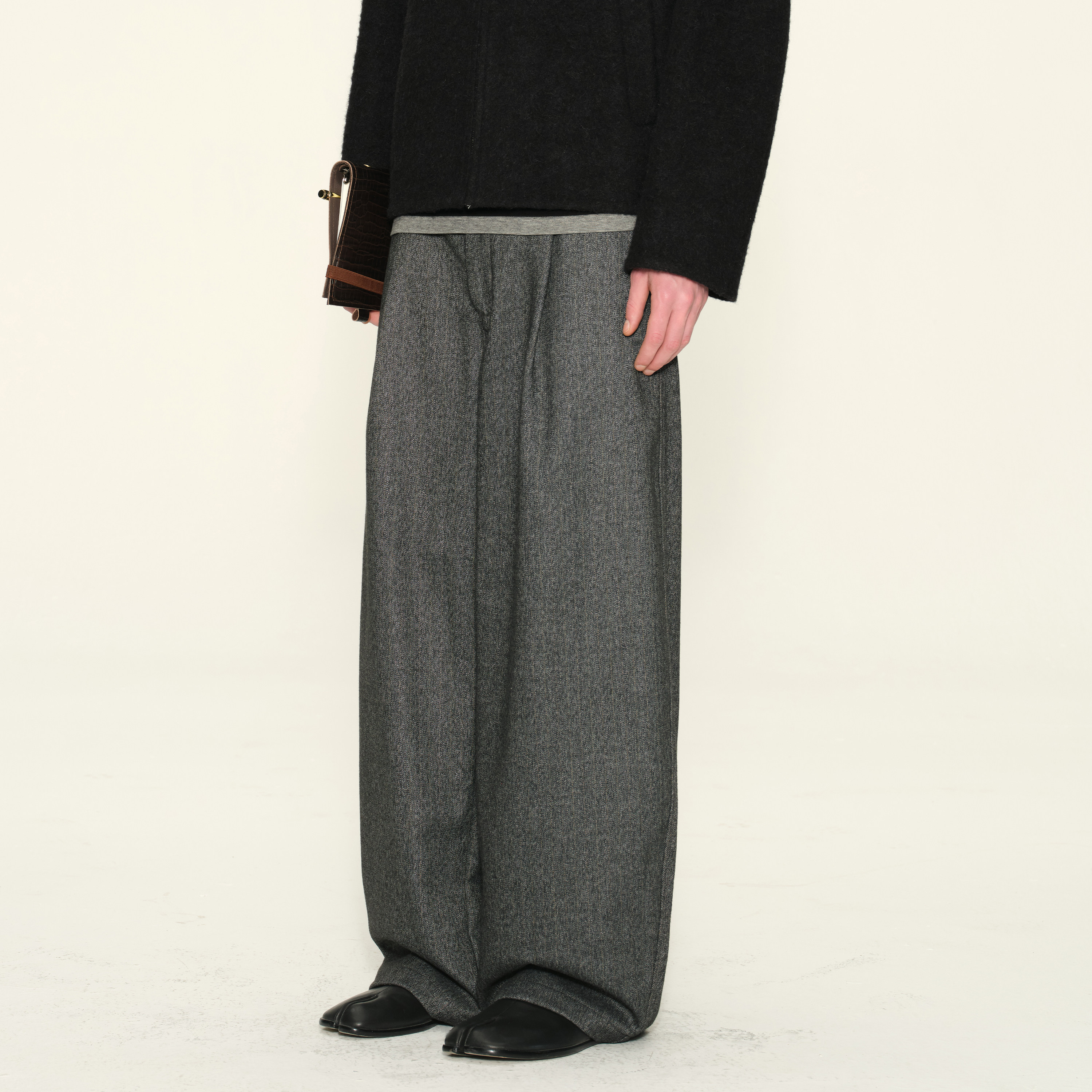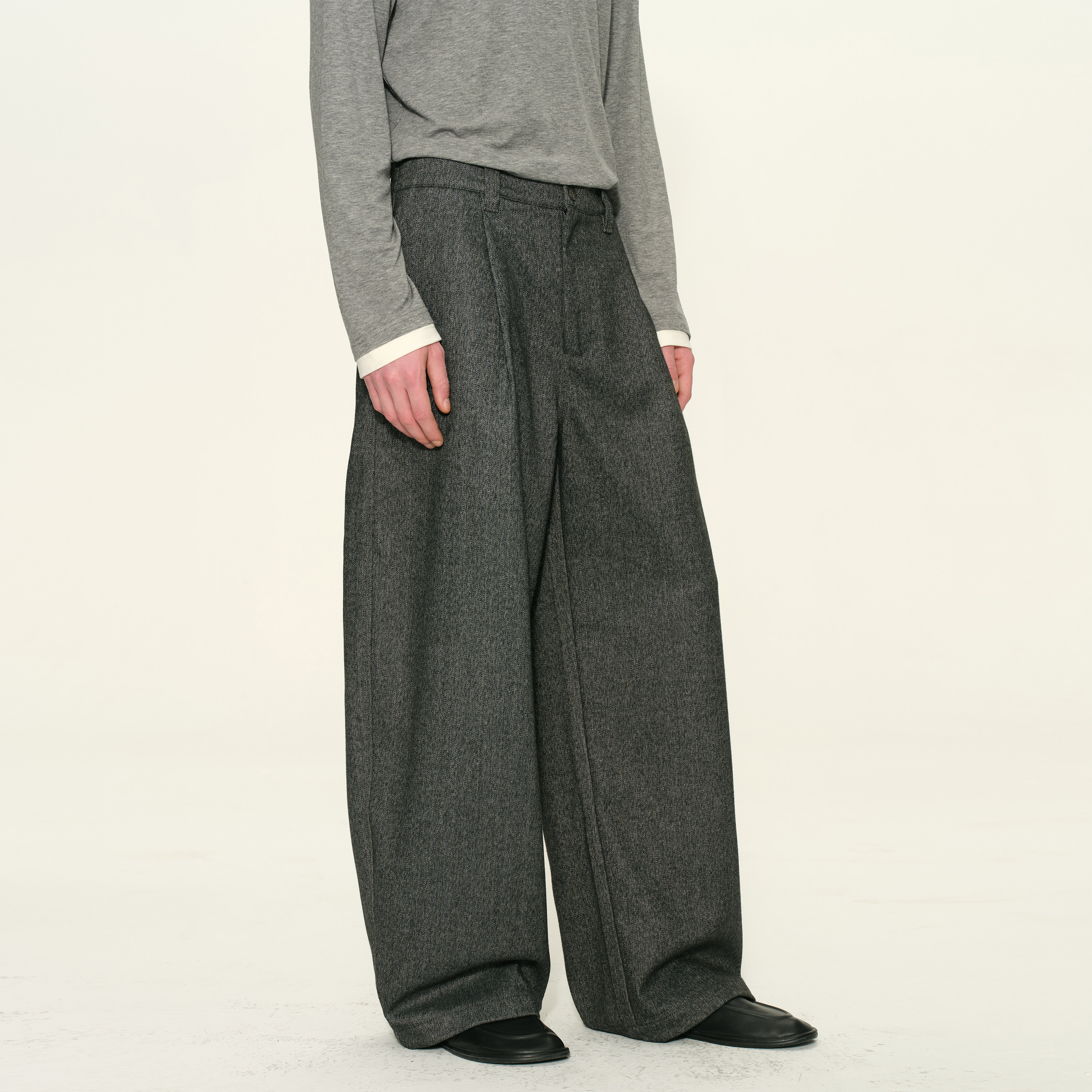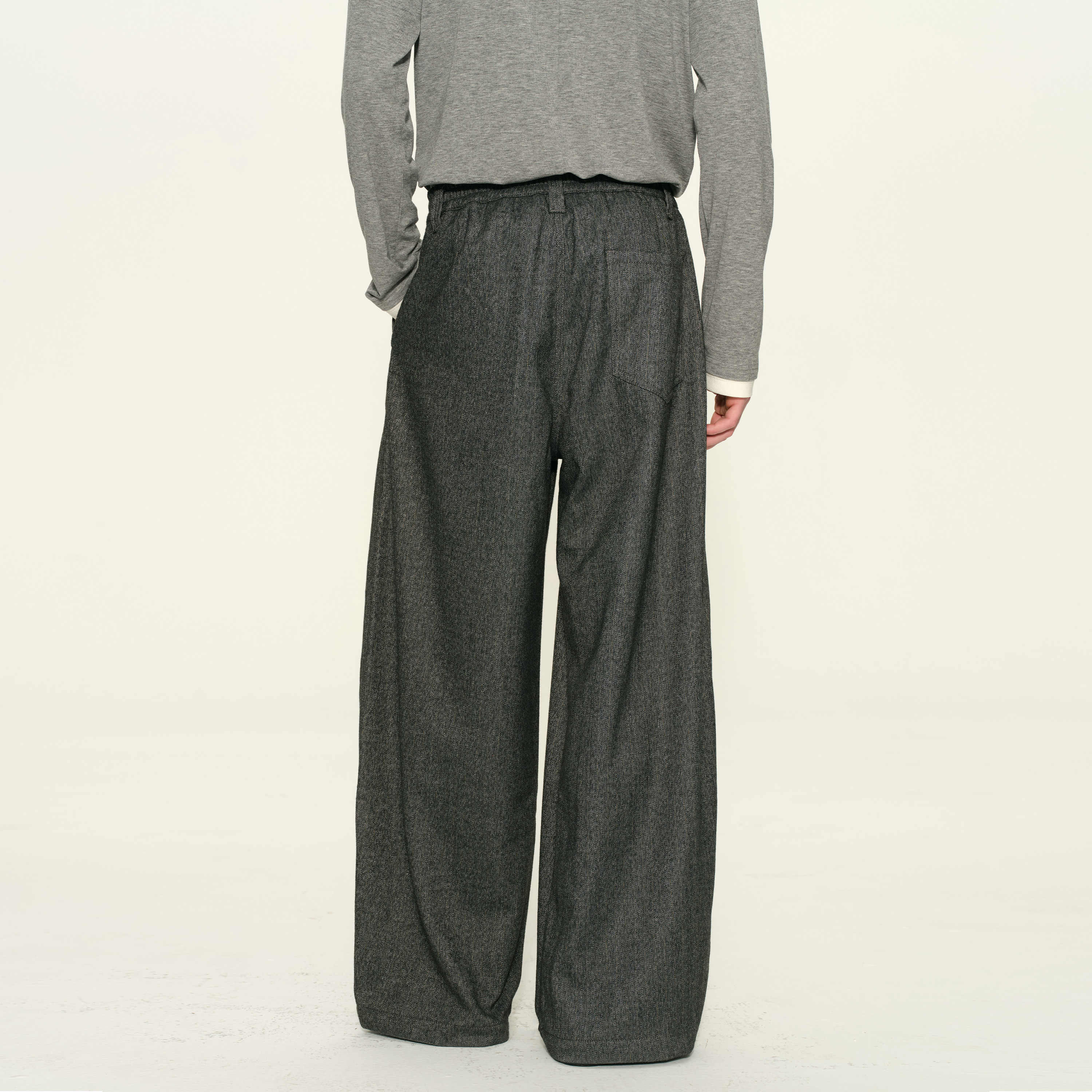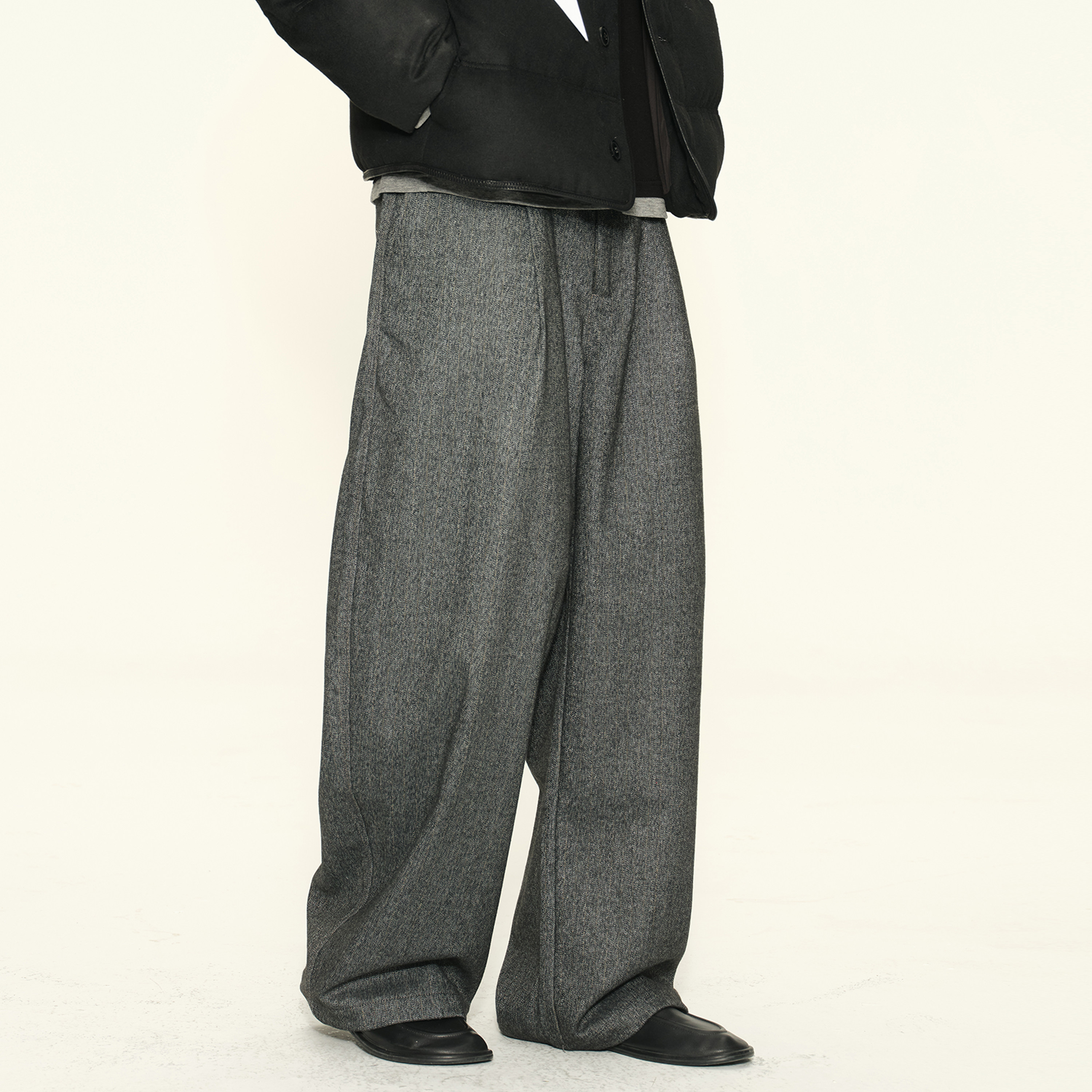 DUPU杜朴 羊毛加厚人字纹休闲裤 松弛垂感宽松直筒复古休闲西裤