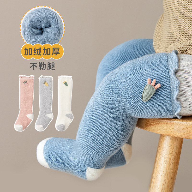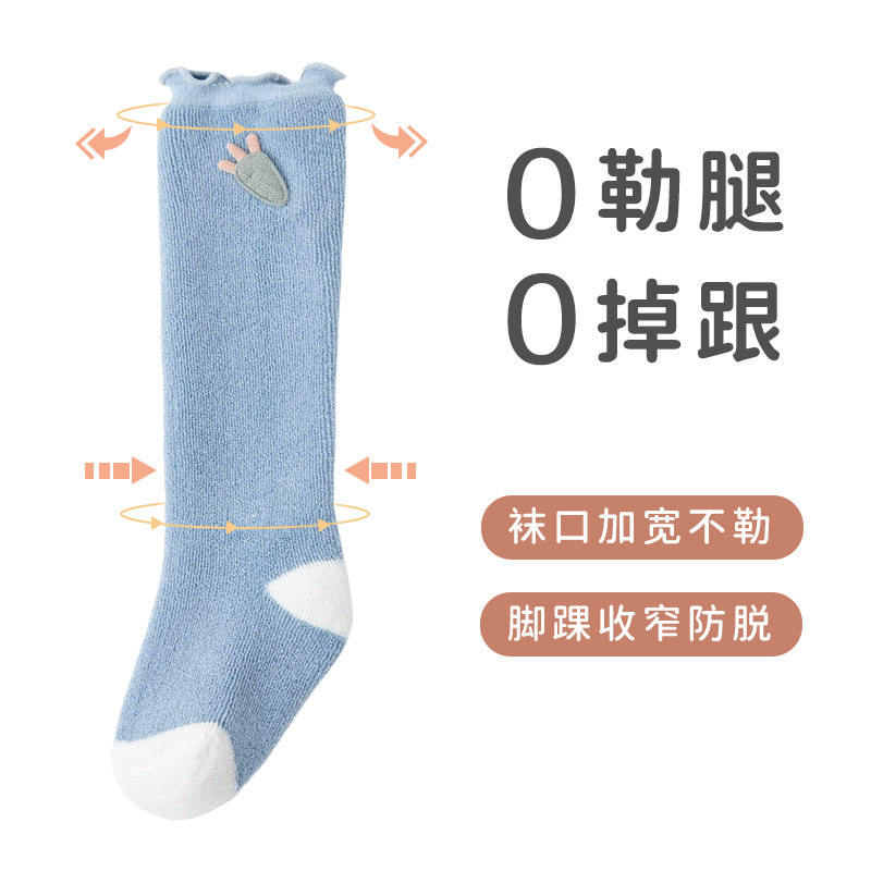 婴儿长筒袜秋冬纯色加厚加绒毛圈高筒新生儿宝宝棉袜子保暖不勒腿