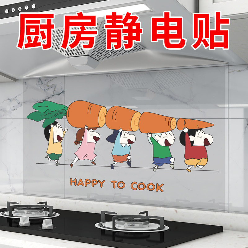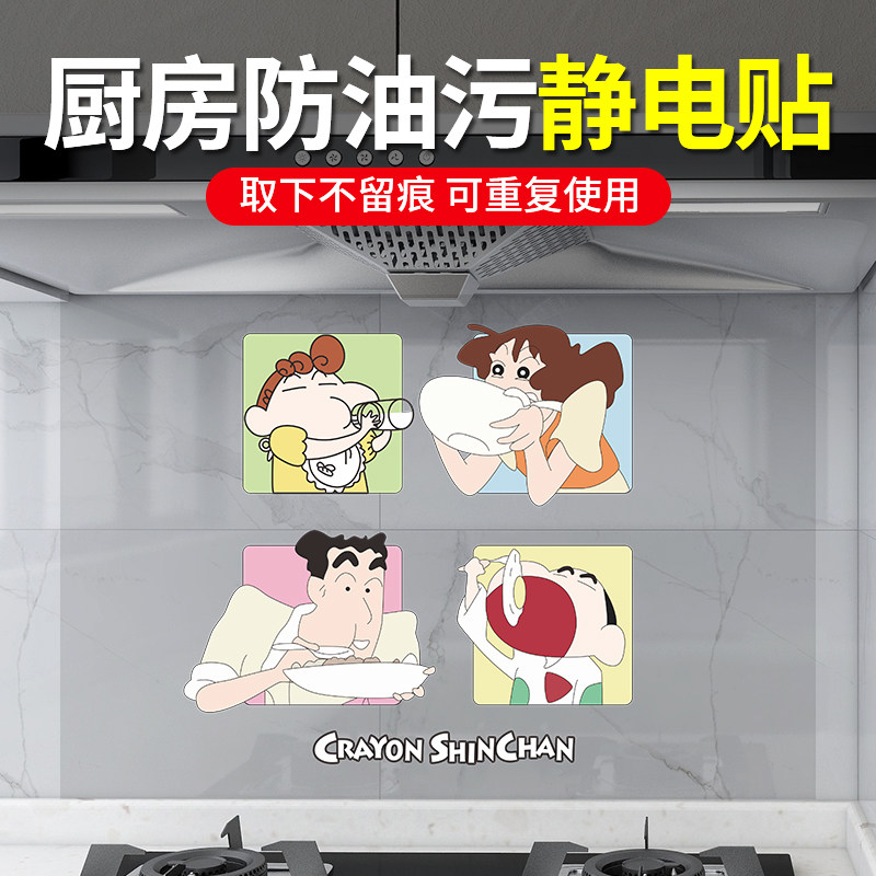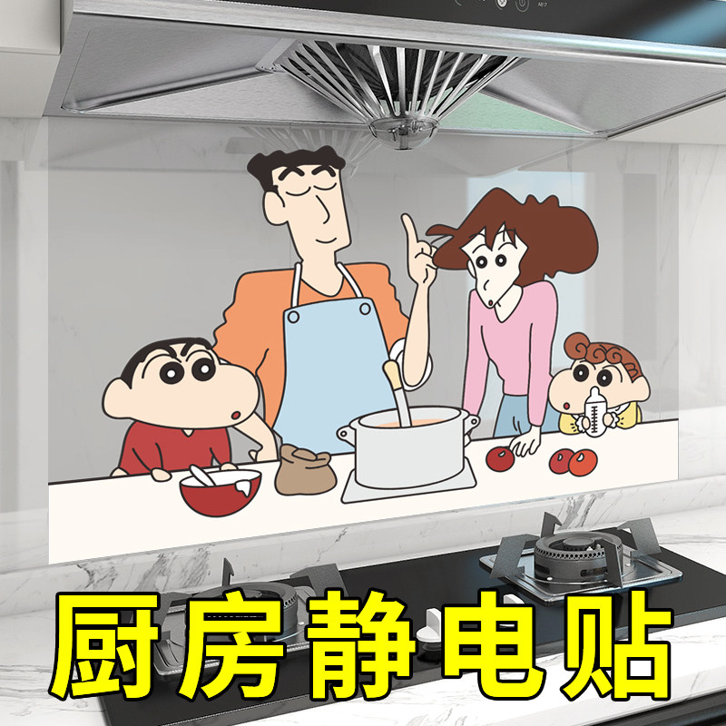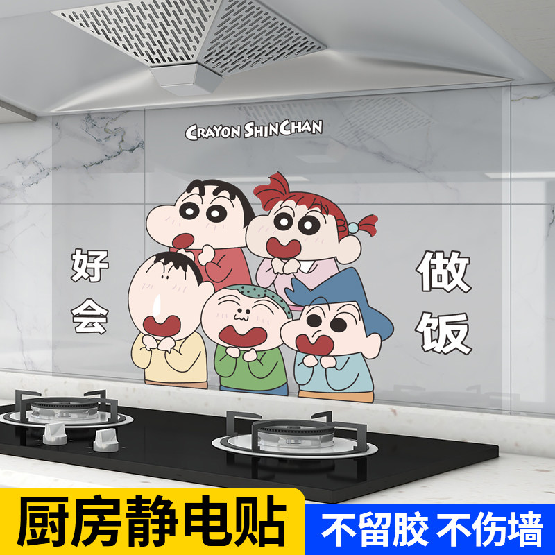 蜡笔小新厨房防火耐高温油烟贴墙壁贴纸可爱贴灶台墙面透明无胶贴