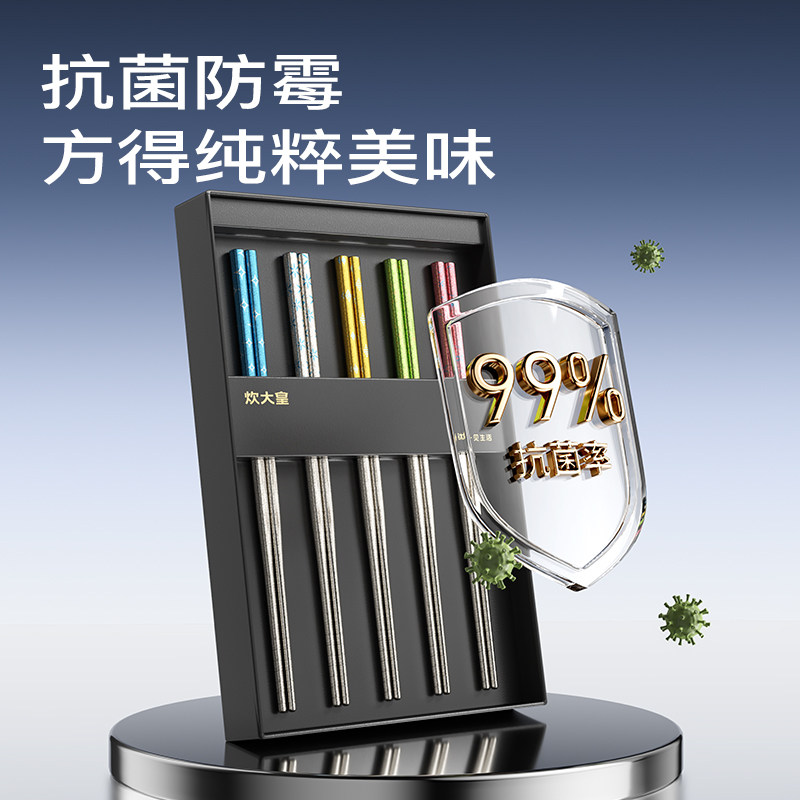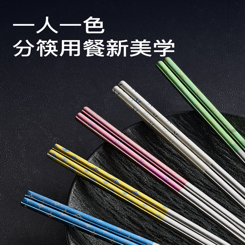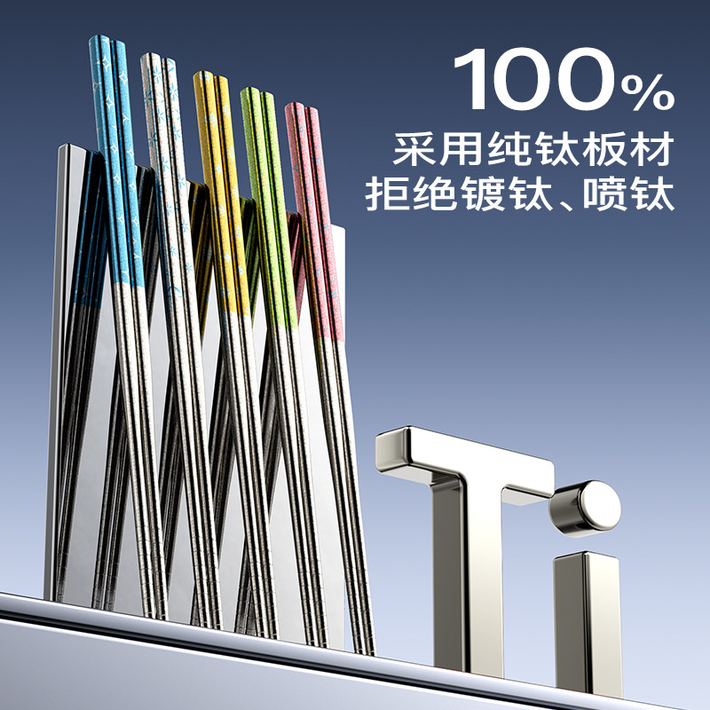 炊大皇钛筷分色筷纯钛板材抗菌隔热防烫耐腐蚀家用家庭礼盒装筷子