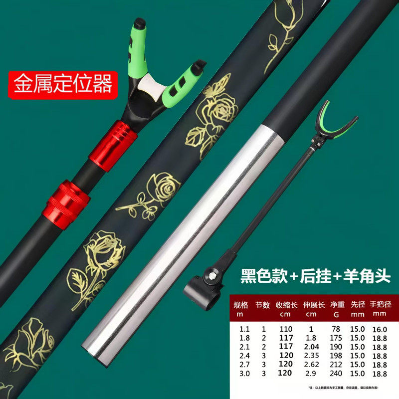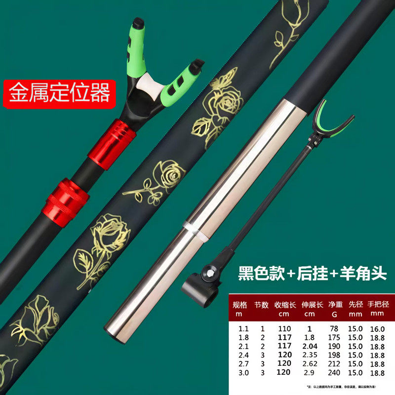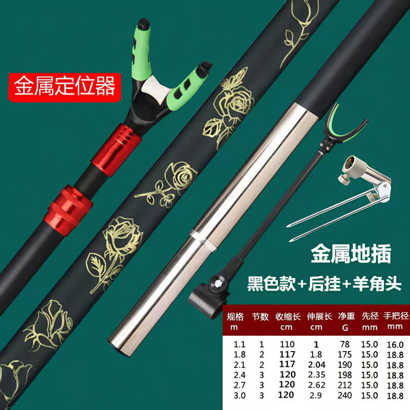 新炮台碳素支架鱼竿架加粗长杆黑金钓箱钓椅地插架杆伸缩后挂定位
