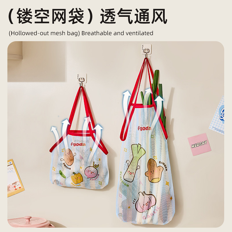 川岛屋厨房葱姜蒜收纳袋果蔬大蒜壁挂透气网兜网袋子洋葱生姜挂袋