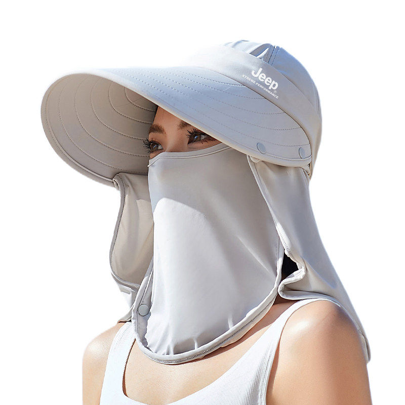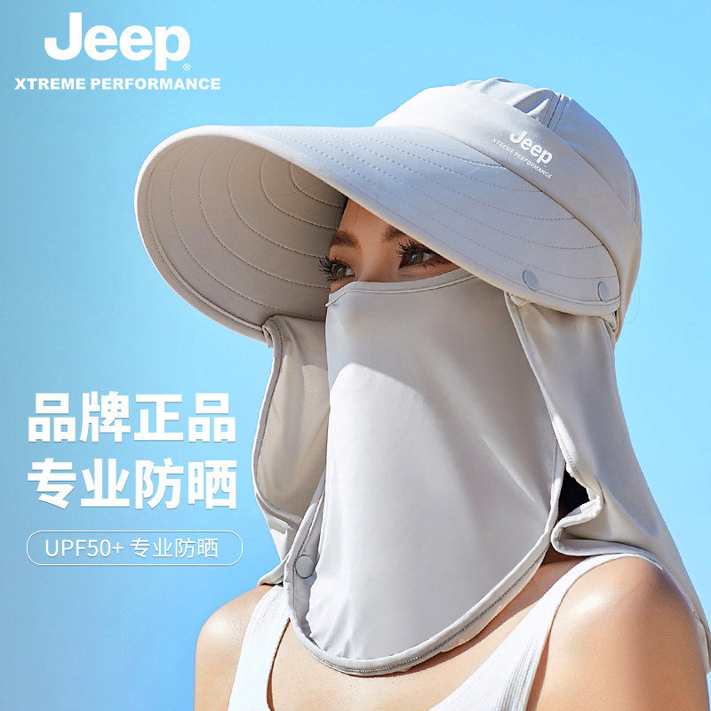 jeep吉普夏季冰丝防晒渔夫帽女防紫外线面罩太阳遮脸遮阳女士帽子