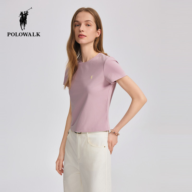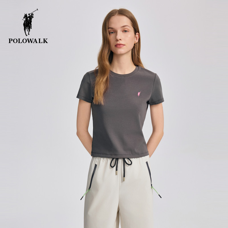 POLOWALK女士短袖圆领T恤2026夏季新款休闲百搭打底衫潮流上衣