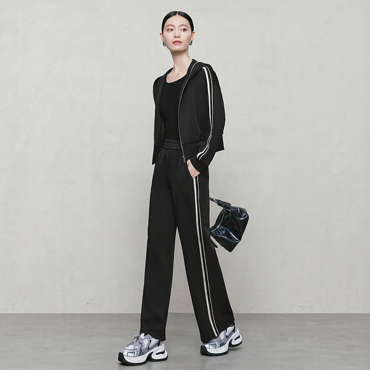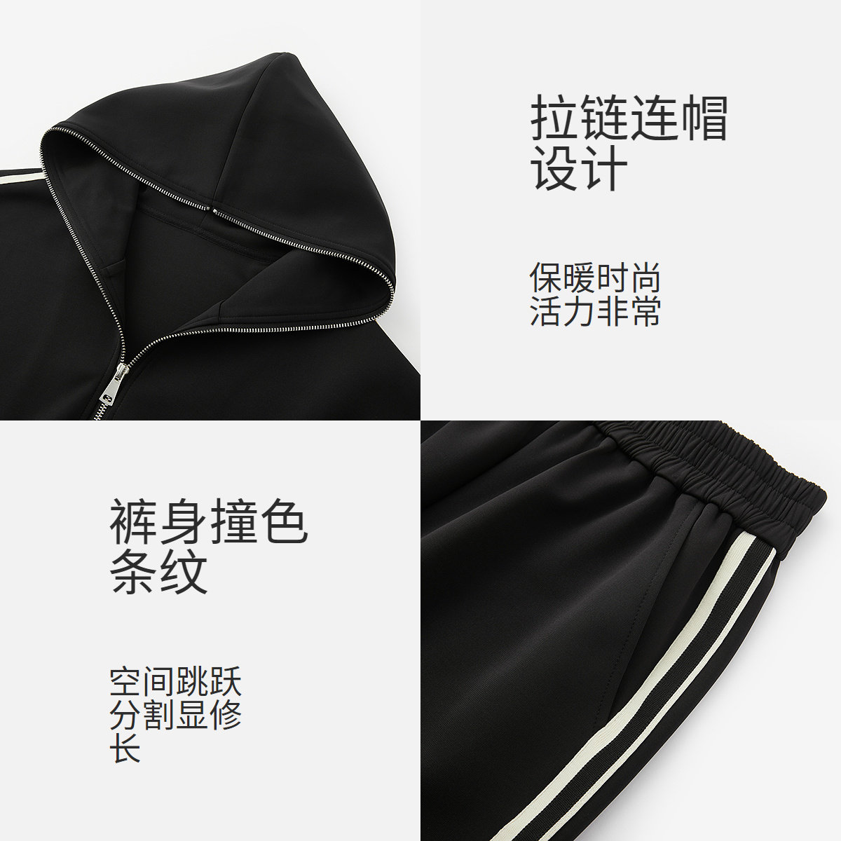 FINITY菲妮迪时尚套装26年春季新款简约通勤拉链连帽设计两件套女