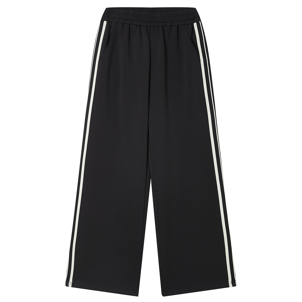 CHICHY洋气显瘦针织两件套女25冬季新款黑色条纹针织开衫休闲裤装