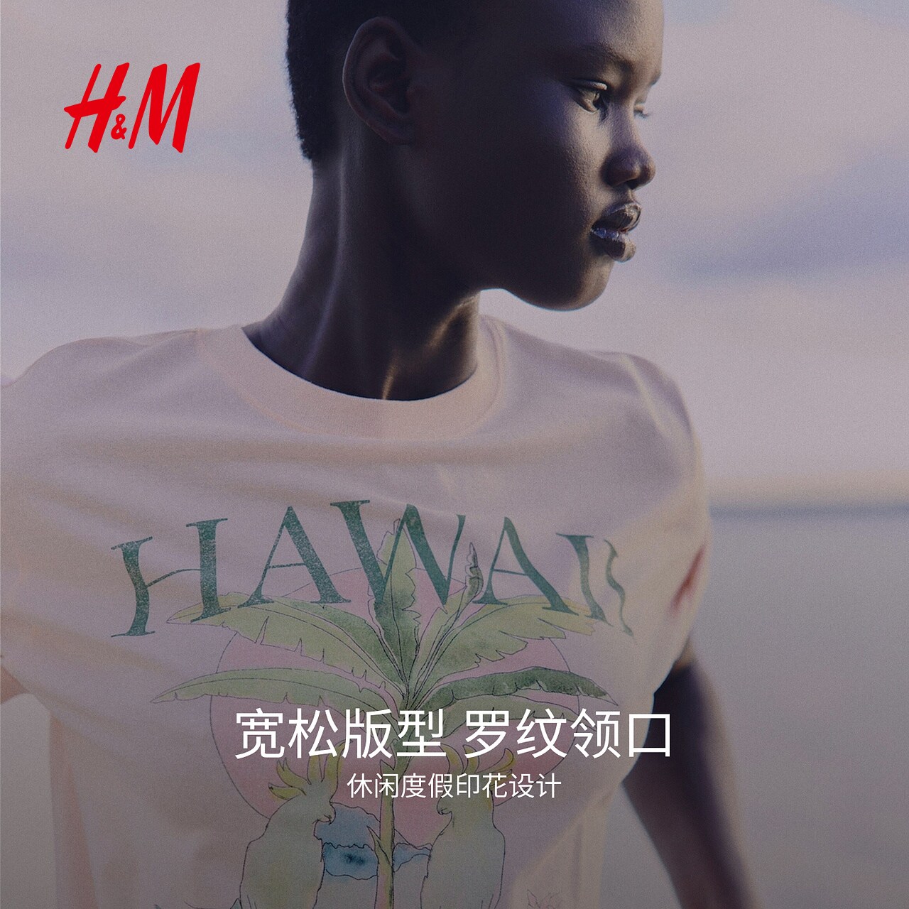 HM女装T恤春季印花宽松美式休闲时尚圆领短袖上衣1293967