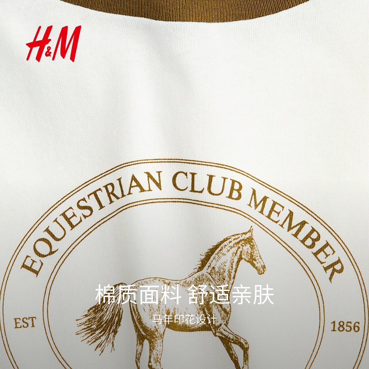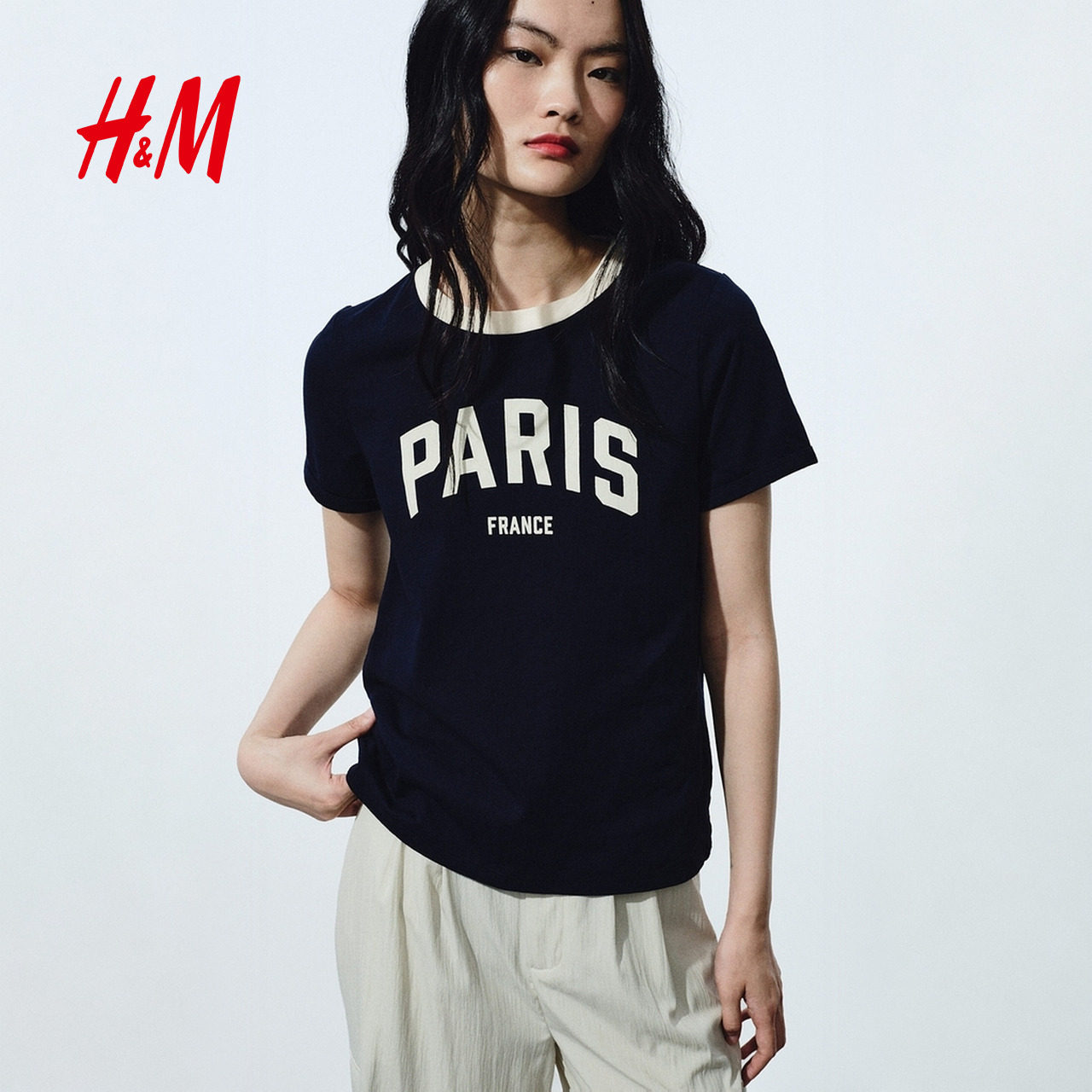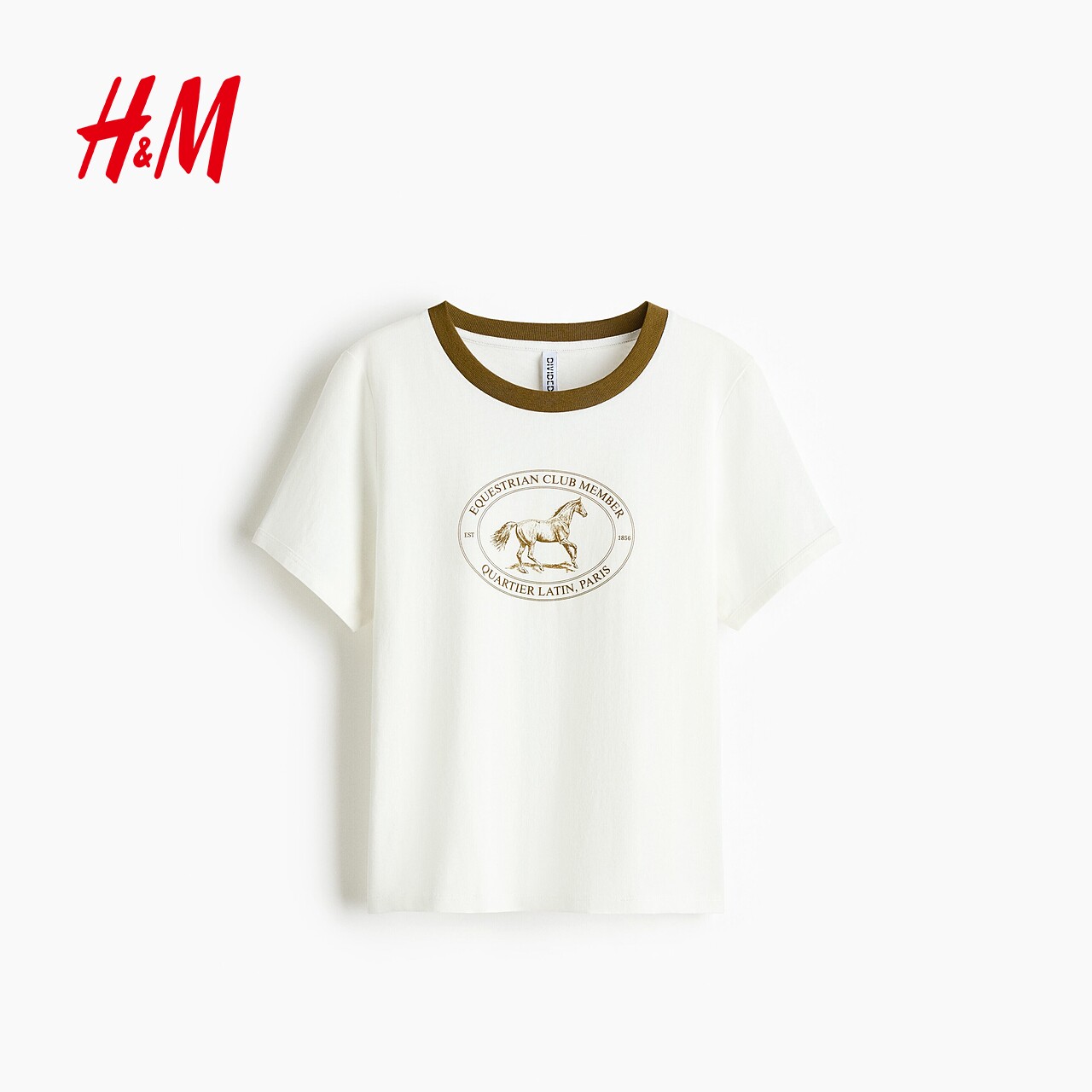 HM女装T恤2026春季新款户外出游印花美式圆领短袖休闲上衣1324004