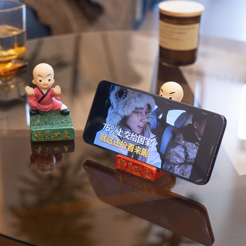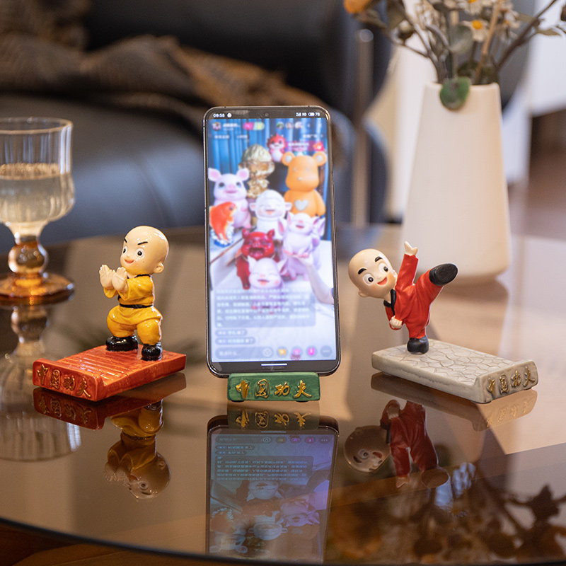 卡通少林功夫可爱手机座懒人手机托架通用版创意办公桌面手机支架
