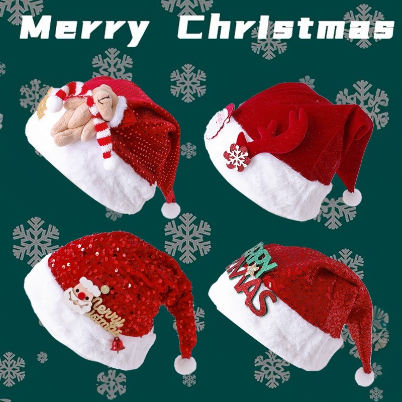 圣诞帽装扮毛绒帽氛围感拍照饰品2025新款圣诞节装饰圣诞树帽子