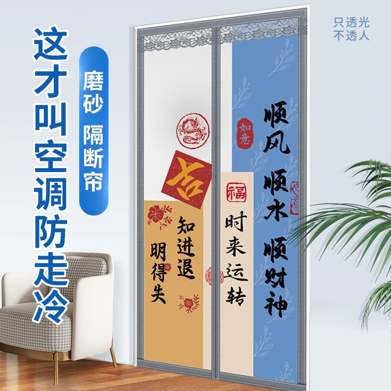家用免打孔卧室空调挡风门帘加厚防风隔断帘厨房隔油烟遮挡帘挂帘