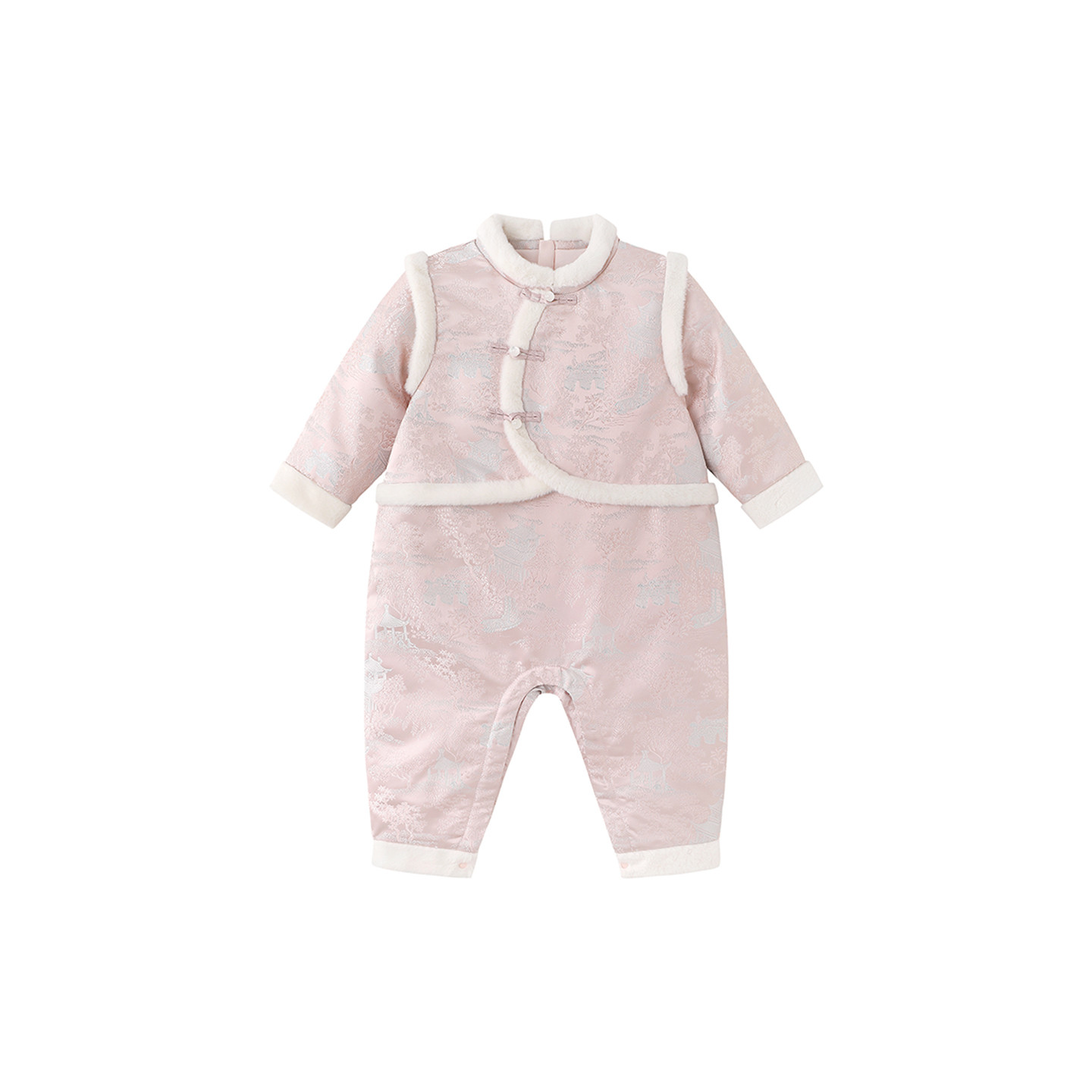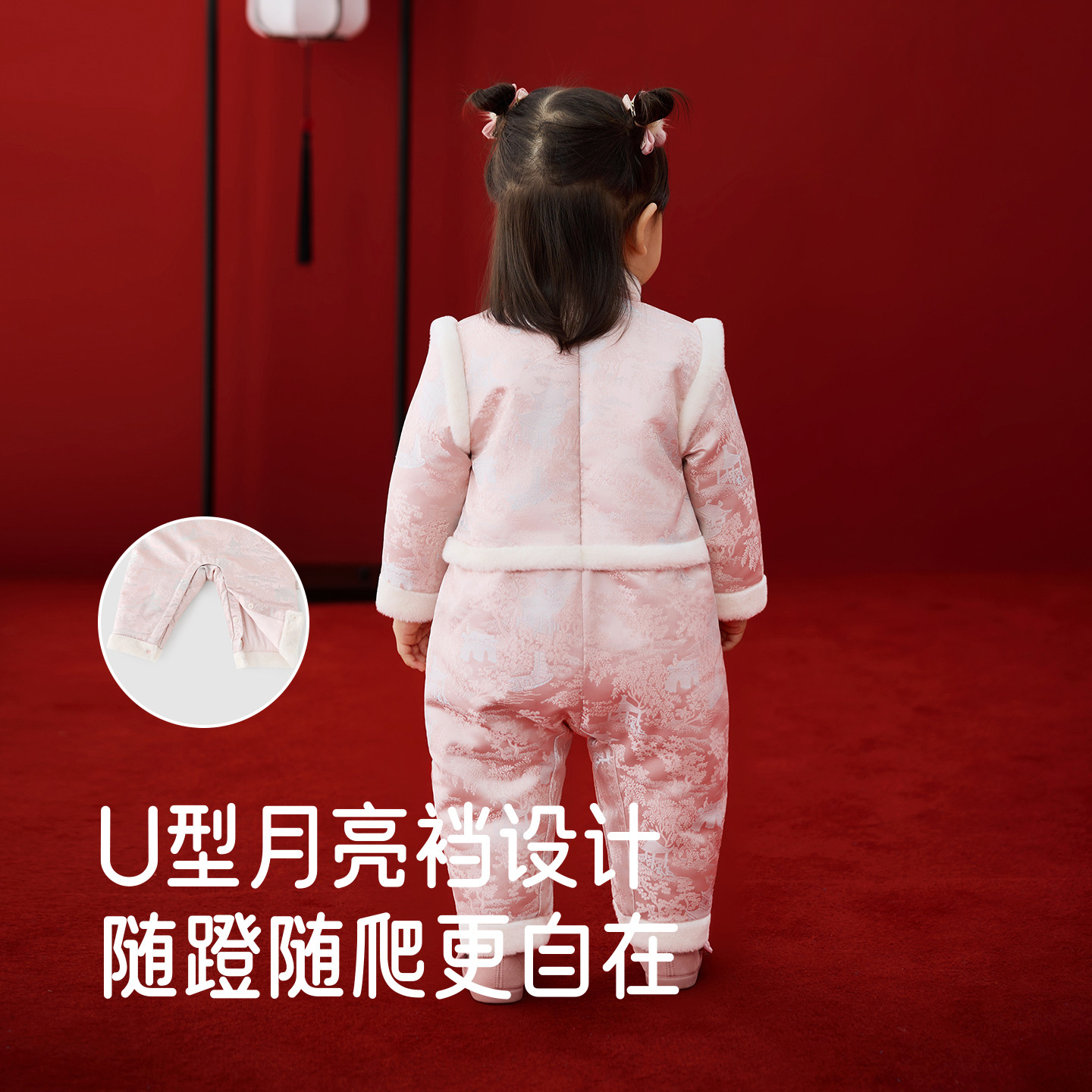 英氏婴儿哈衣假两件爬服冬季保暖新中式新款喜庆新年服夹棉连体衣