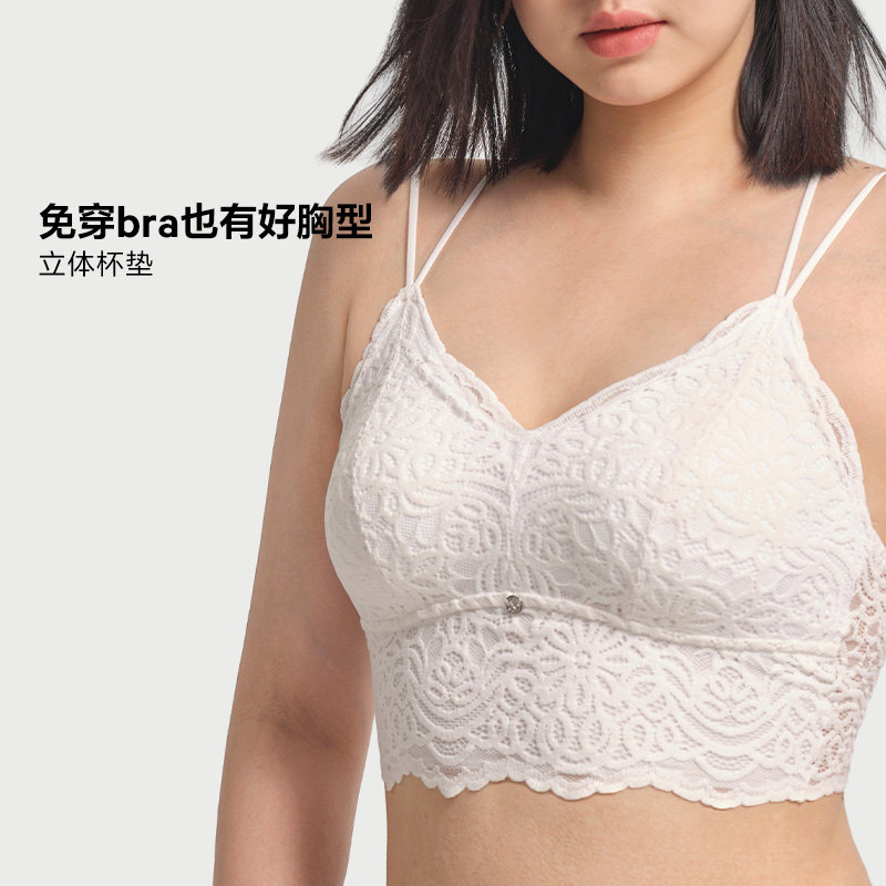无痕美背抹胸内衣女小胸聚拢可外漏细肩带一体固定杯背心式文胸罩