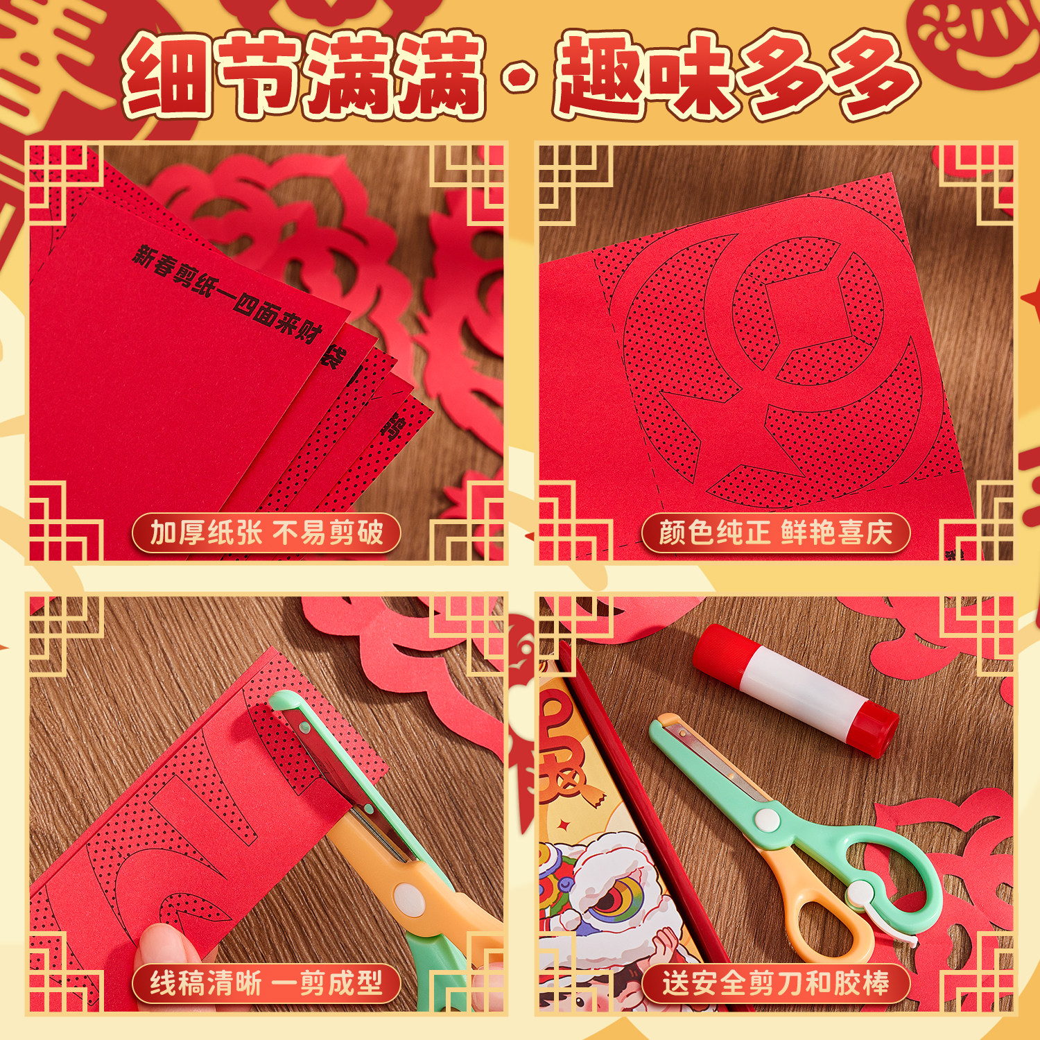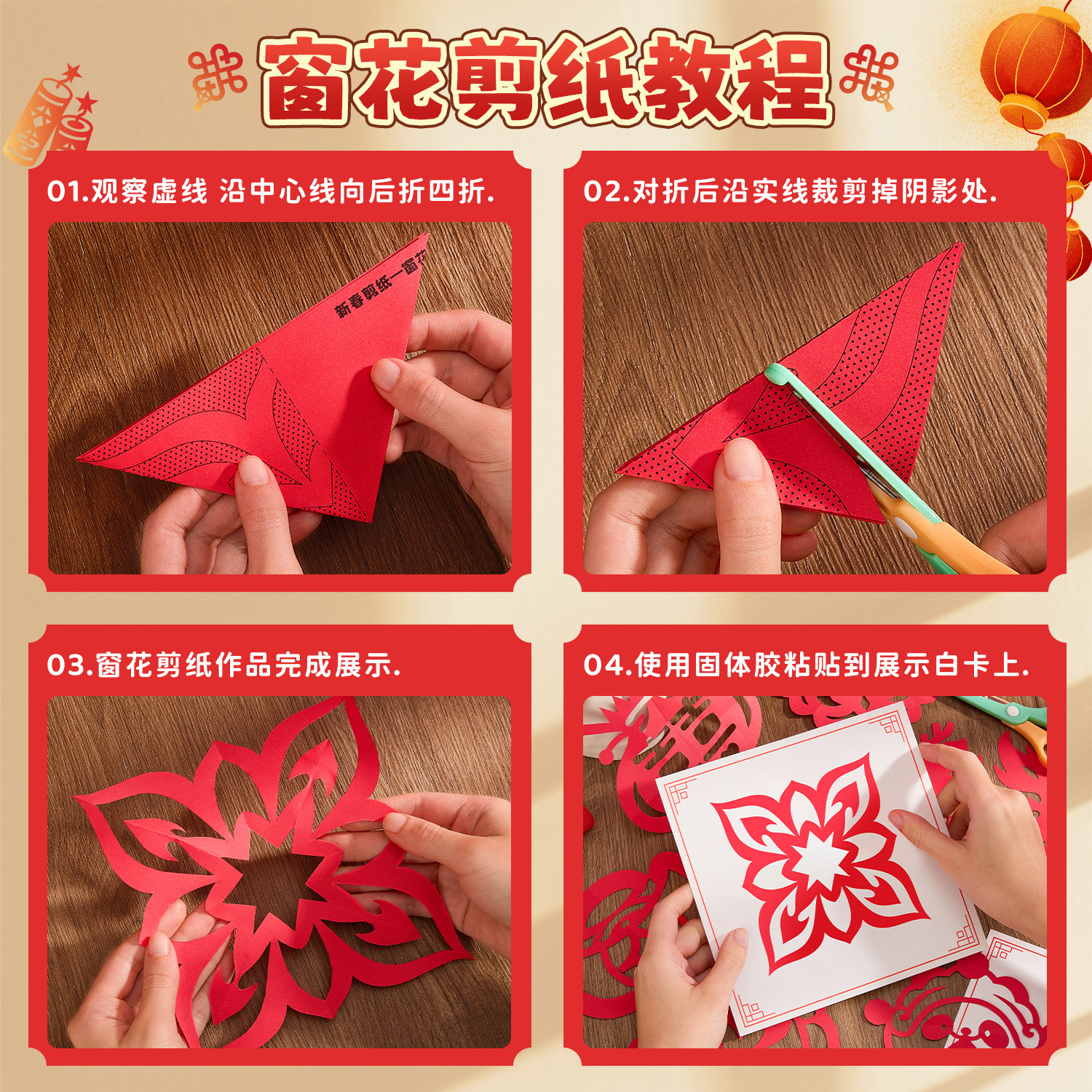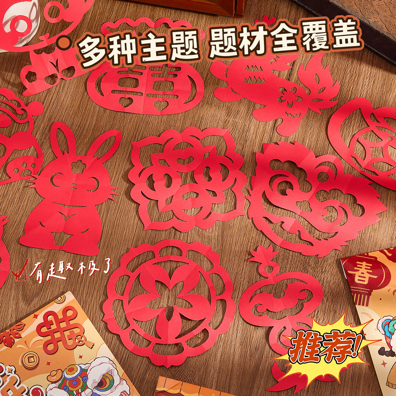 马年手工窗花纸2026年新款春节剪纸diy新年儿童窗花专用纸张门贴富幼儿园小学生传统国风图案底稿半成品折纸