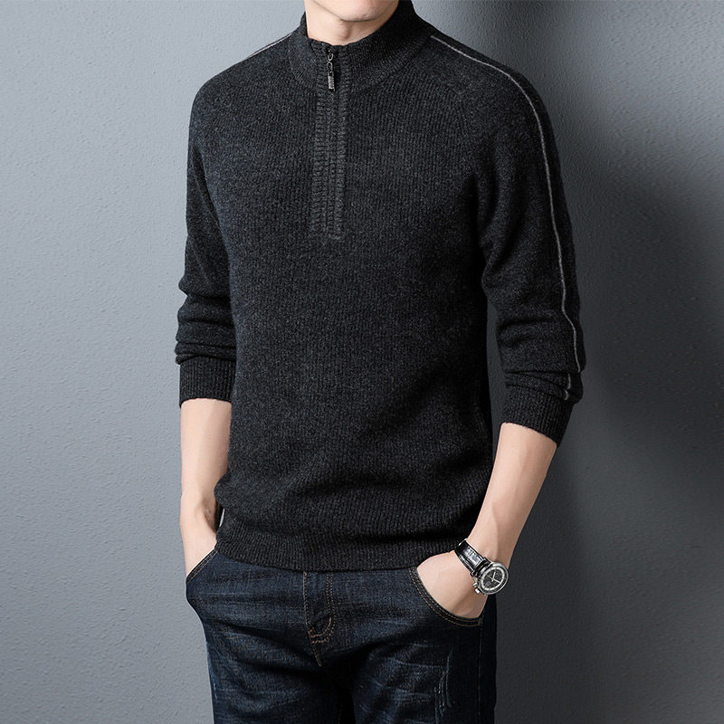 马登工装美式复古半拉链立领毛衣套头打底高领针织衫上衣男秋冬季