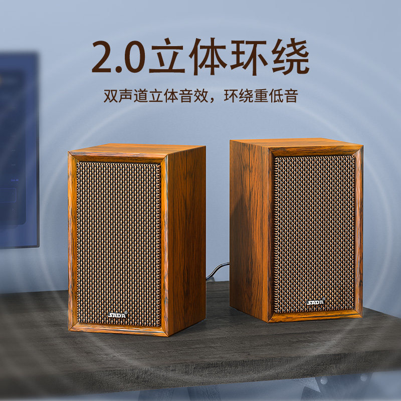 赛达电脑音响木质桌面蓝牙2.0家用小型多媒体有线笔记本外接音箱
