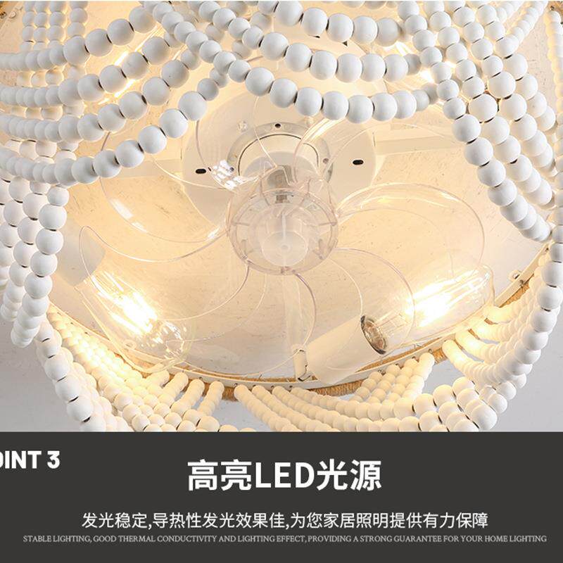 亚马逊波西米亚风木珠吸顶风扇灯民宿客厅木质珠帘卧室吸顶灯
