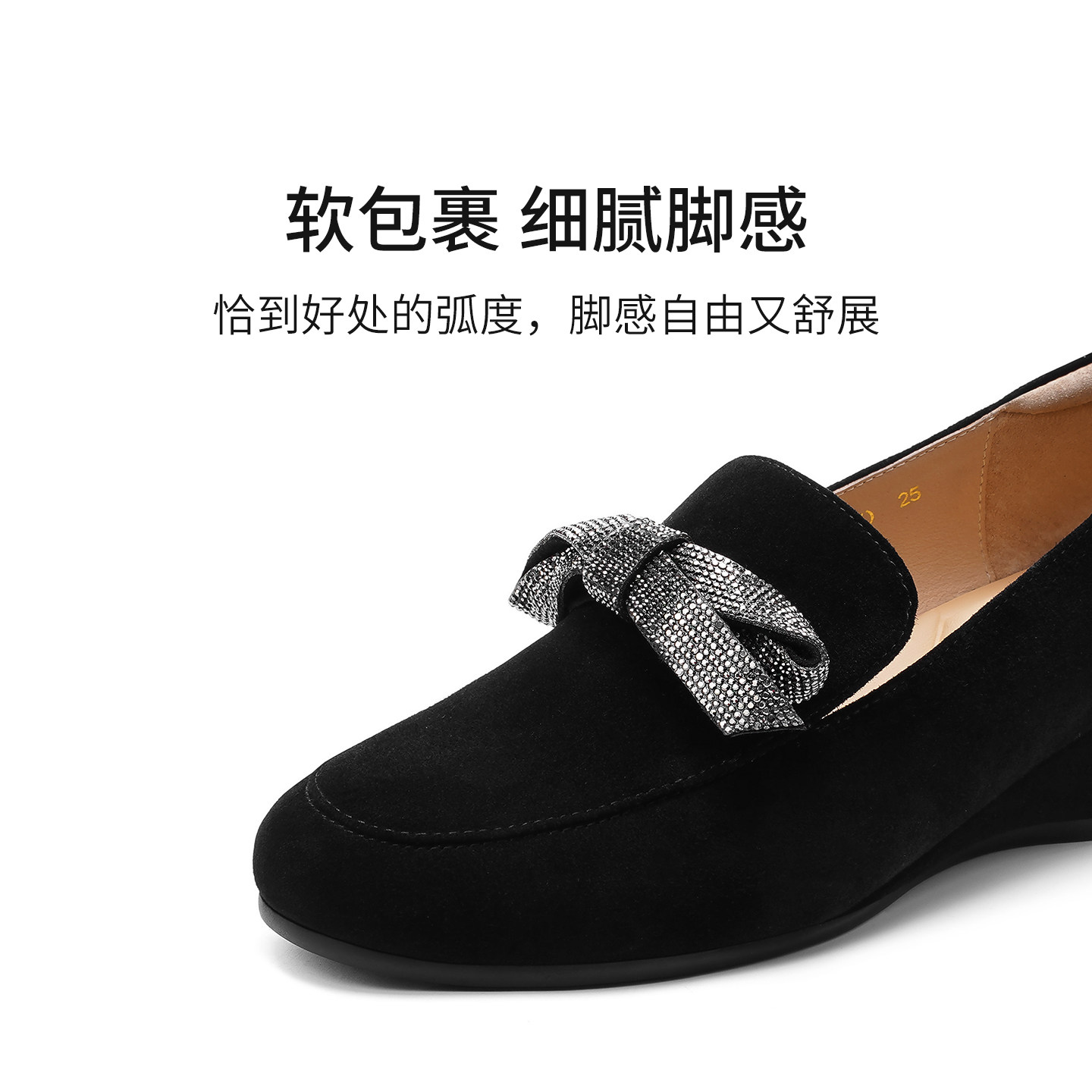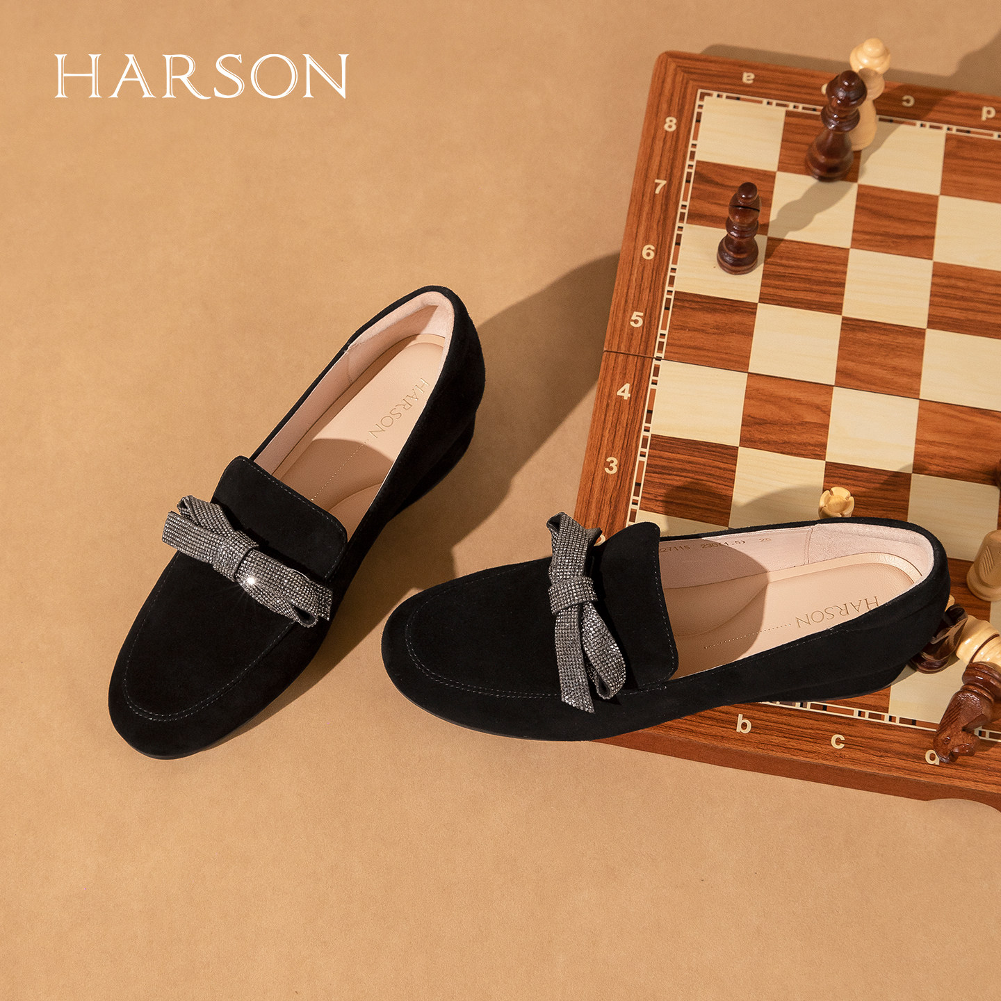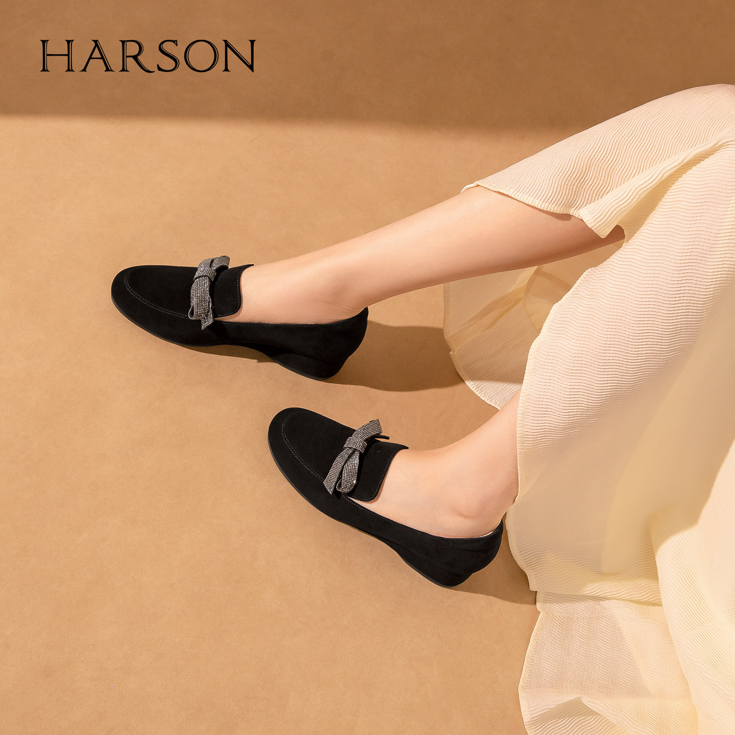 哈森蝴蝶结乐福鞋黑色坡跟通勤舒适百搭女鞋2026新款HS269402