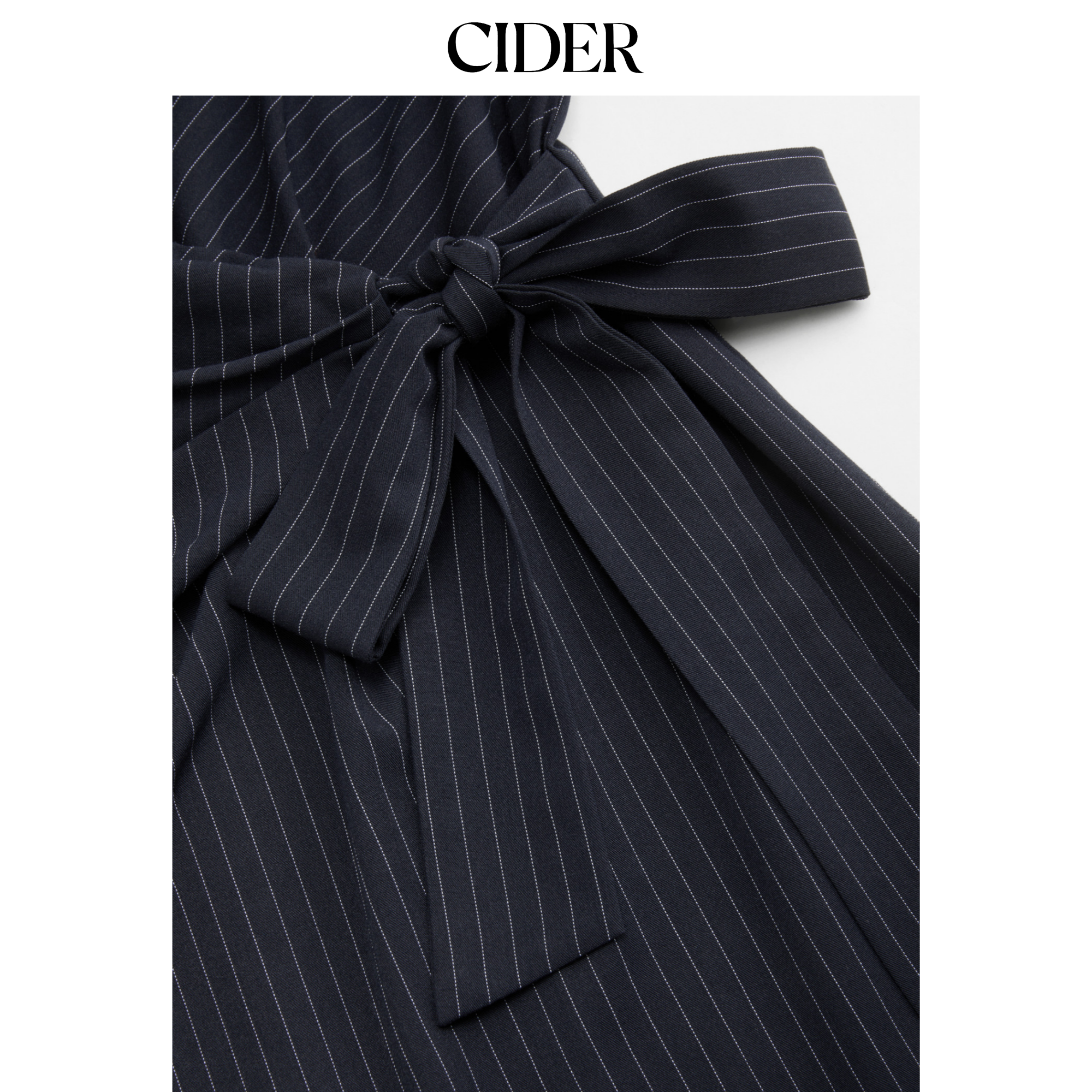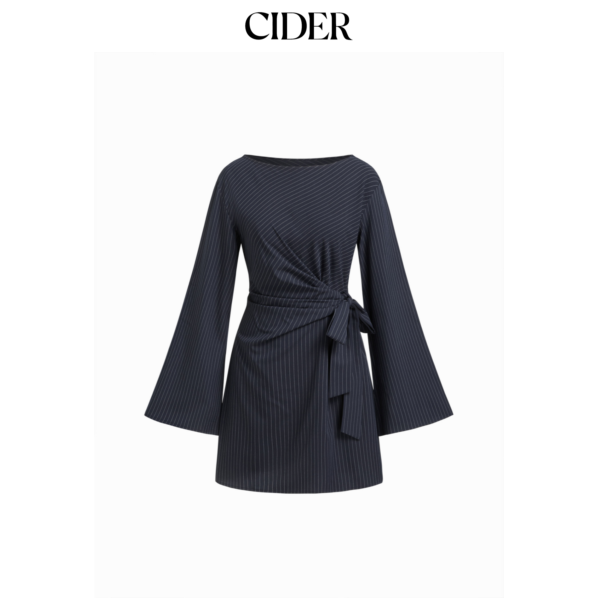 CIDER条纹船领喇叭袖系带A字迷你连衣裙115016380