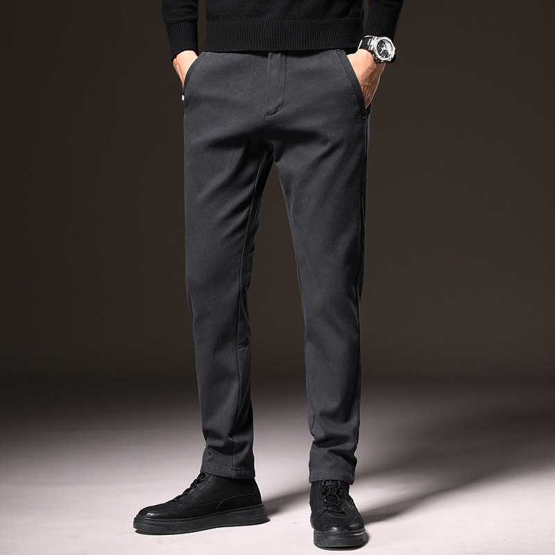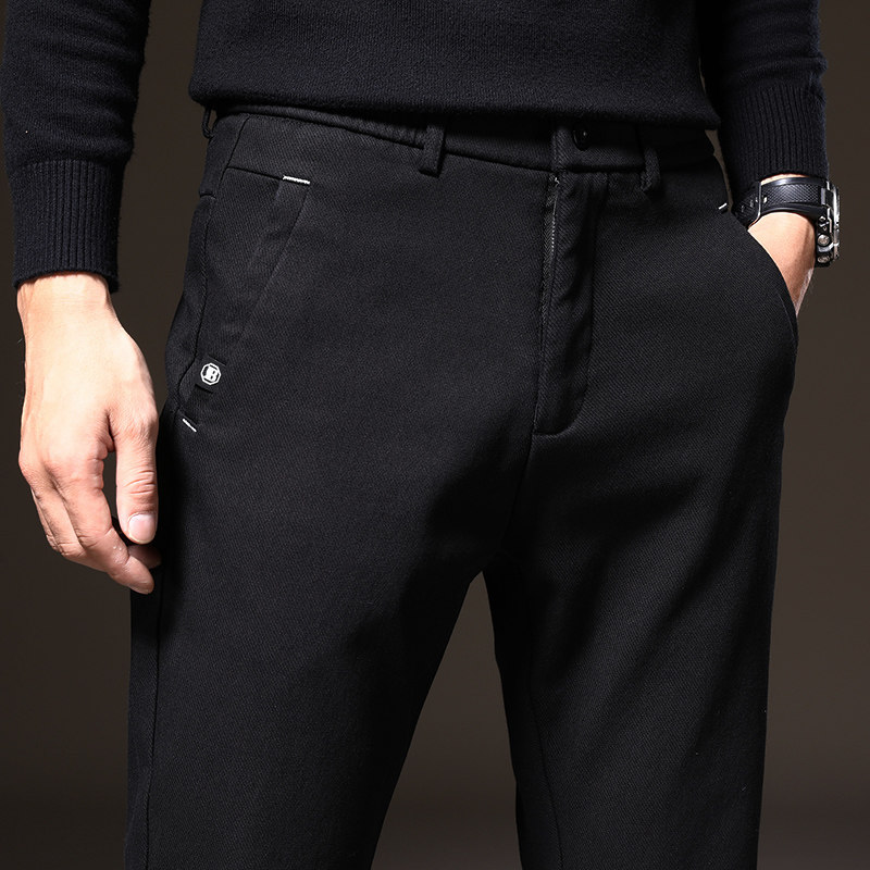 罗蒙加绒加厚男士休闲裤商务休闲秋冬季新款弹力直筒西裤秋冬款
