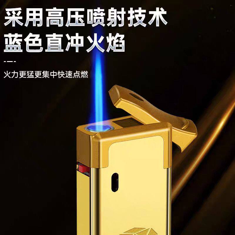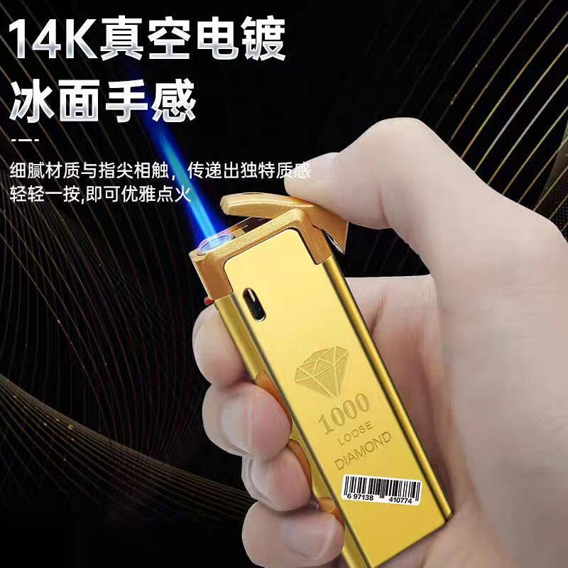 高颜值蓝焰直冲防风打火机金条钻石防爆个性充气创意金属