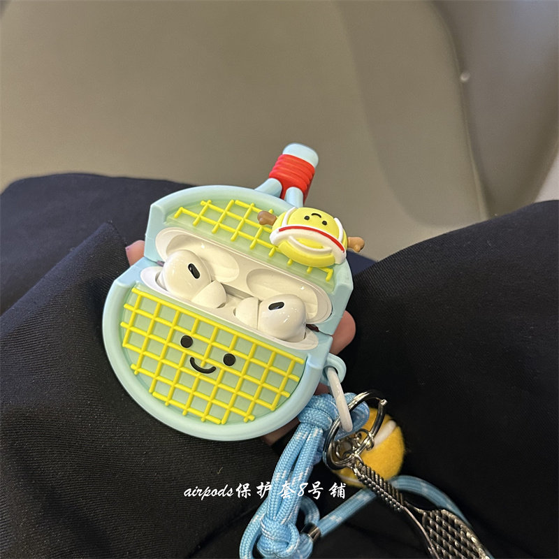 趣味可爱网球拍适用于苹果airpods pro1代2代3代蓝牙耳机壳保护套