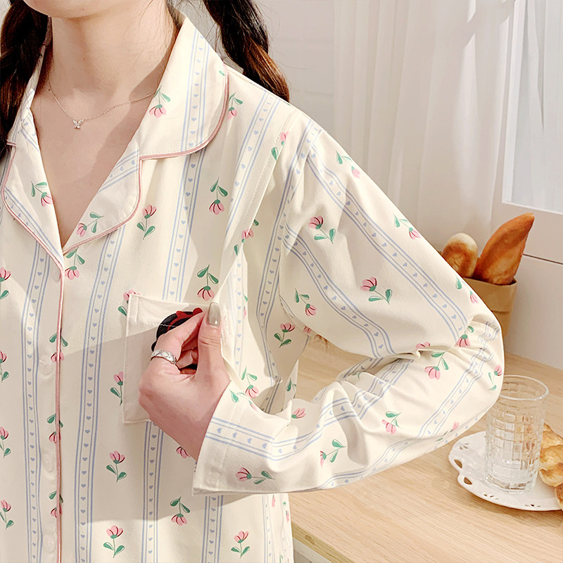 带胸垫奶香风纯棉月子服春秋季产后产妇孕妇睡衣秋冬款哺乳喂奶衣
