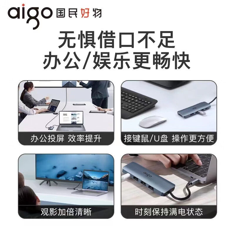 爱国者typec拓展坞多接口扩展器hdmi投屏转换usb分线器hub集线网线转接头适用苹果雷电4笔记本电脑iPad平板