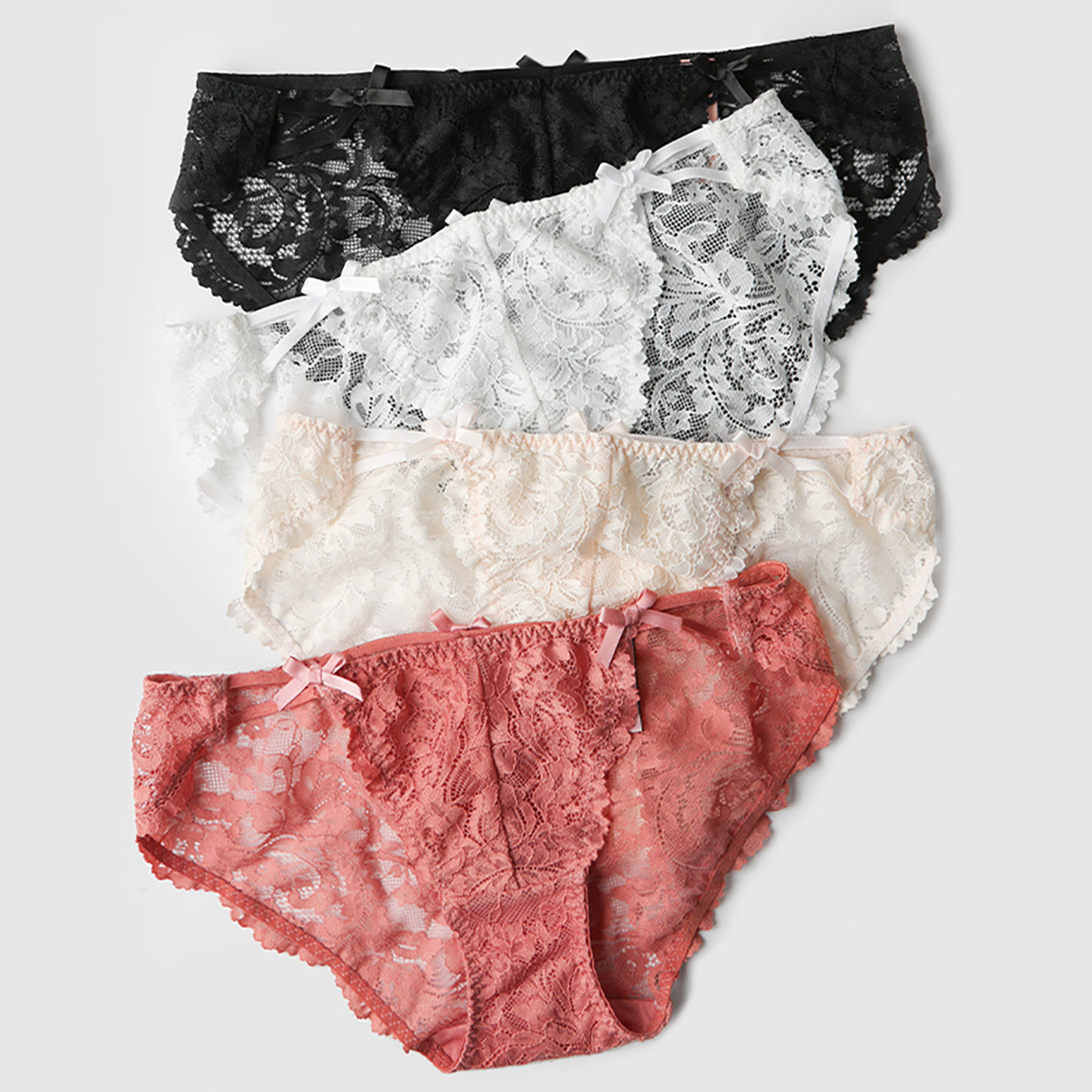 3条98元蕾丝性感内裤女纯棉抗菌裆性感镂空黑比基尼低腰三角裤夏