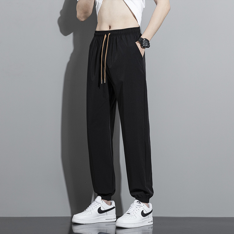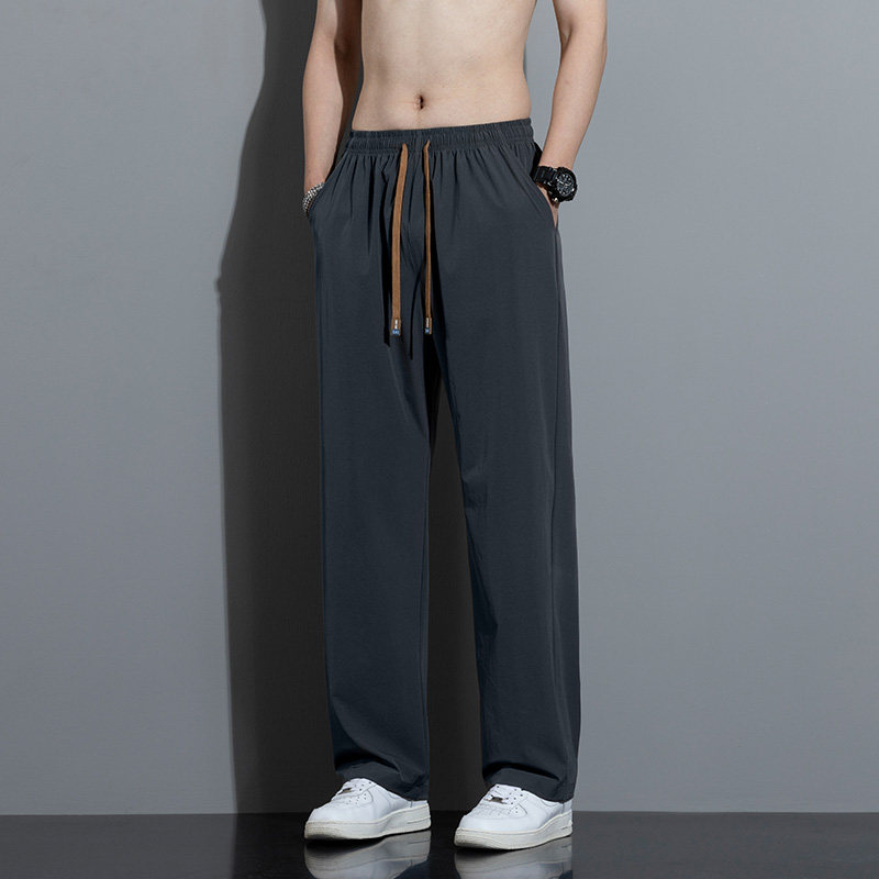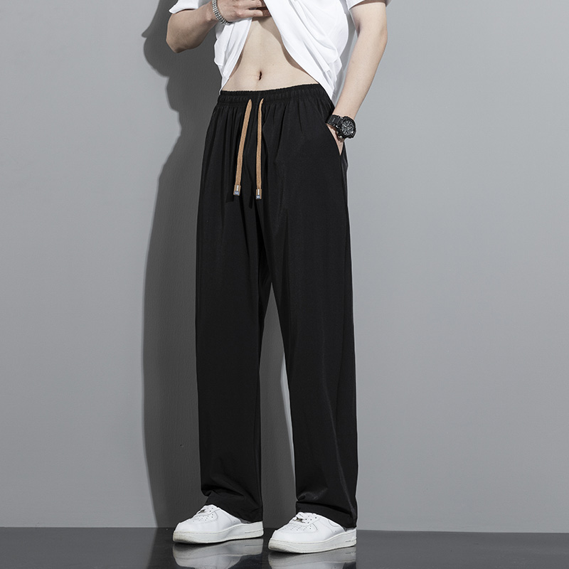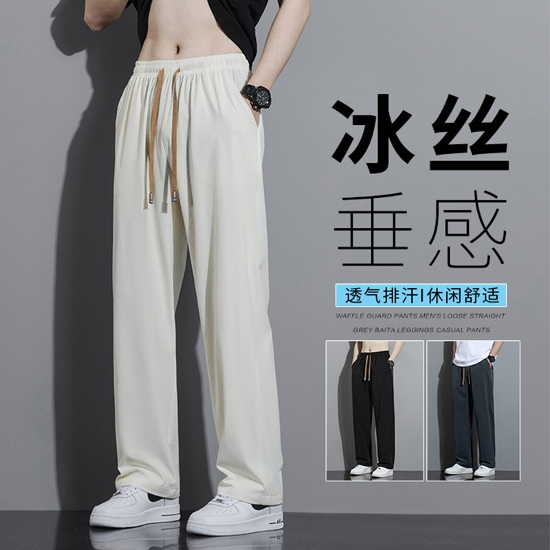 冰丝裤子男款2025秋季潮牌宽松直筒长裤男生休闲运动速干九分男裤