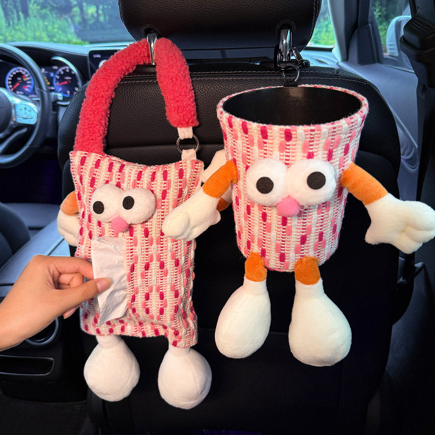 车载纸巾盒垃圾桶二合一卡通可爱抽纸收纳挂袋汽车椅背装饰抽纸袋