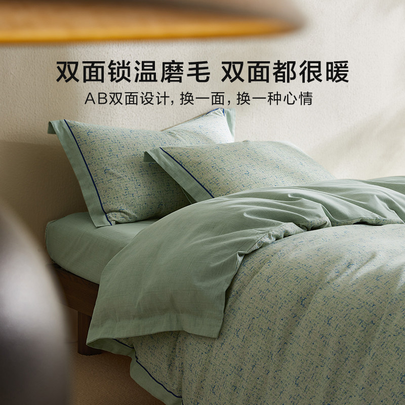 水星家纺全棉磨毛四件套纯棉抗菌加厚保暖床上用品秋冬天床单被套