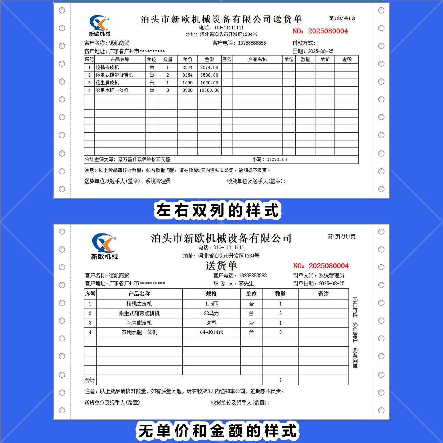 送货单打印软件系统销售开单出货发货票据出库电脑打单模板电子版