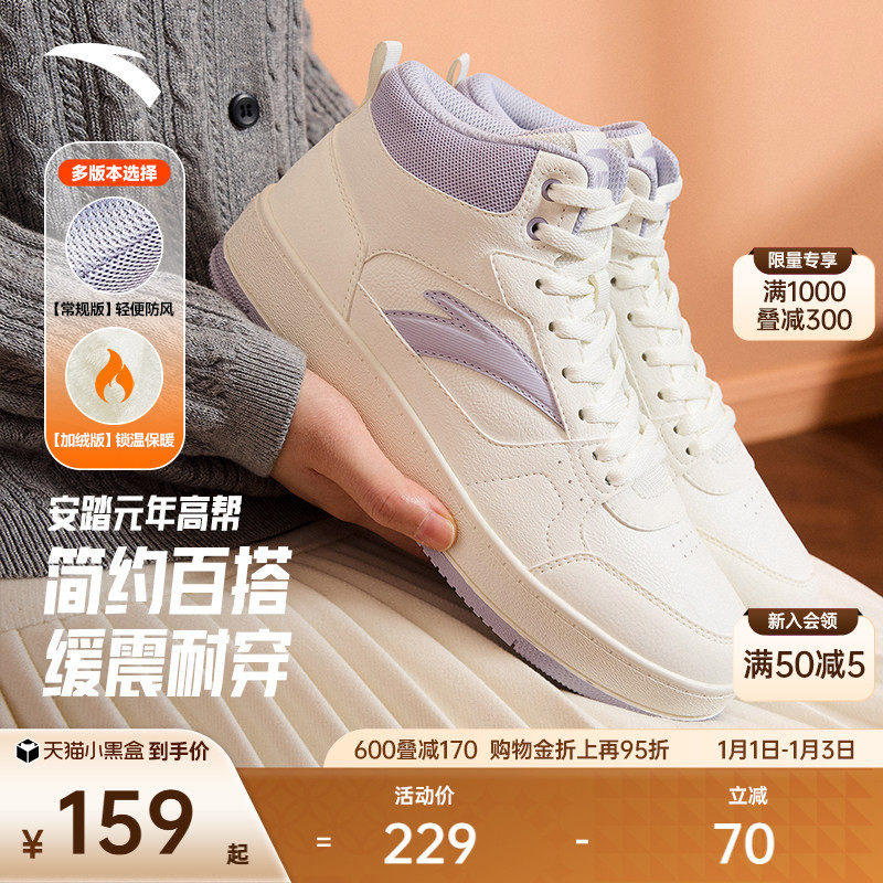 安踏元年丨经典高帮皮面板鞋加绒棉鞋女鞋冬季百搭潮流滑板运动鞋