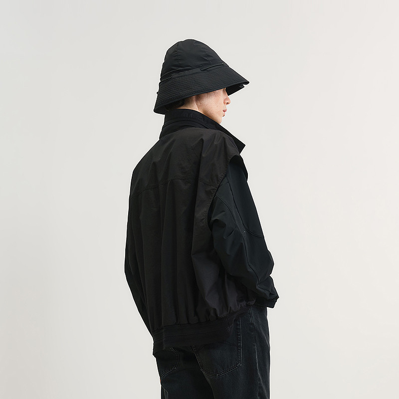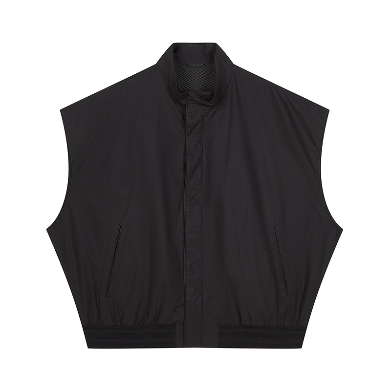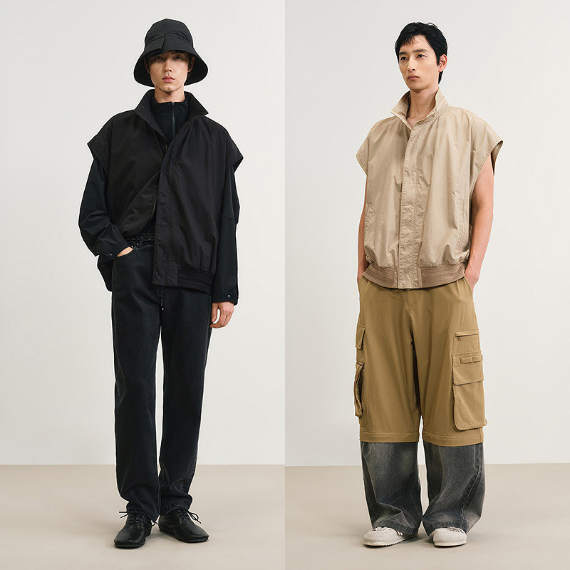 速写男装春秋新款男士马甲工装风连帽立领马甲可收纳帽复古时尚