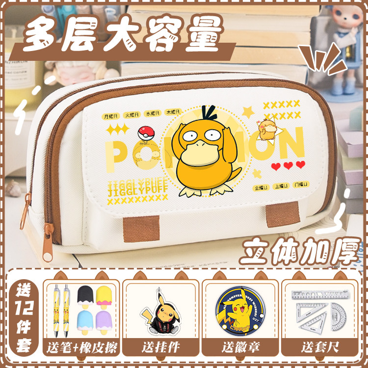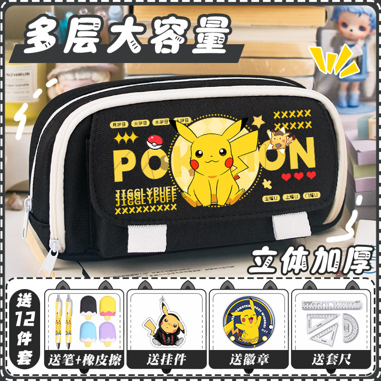 动漫宝可梦皮卡丘可达鸭笔袋男生大容量双层笔袋中学生文具收纳袋