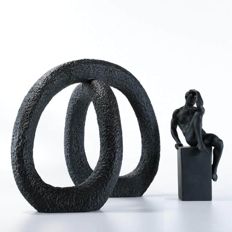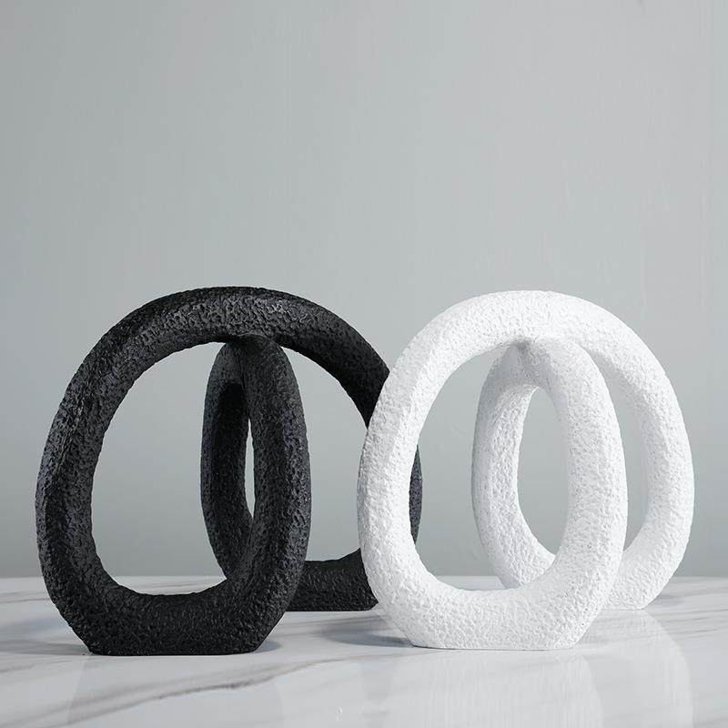 现代极简创意黑白色环形样板房间售楼处大堂抽象展厅软装饰品摆件