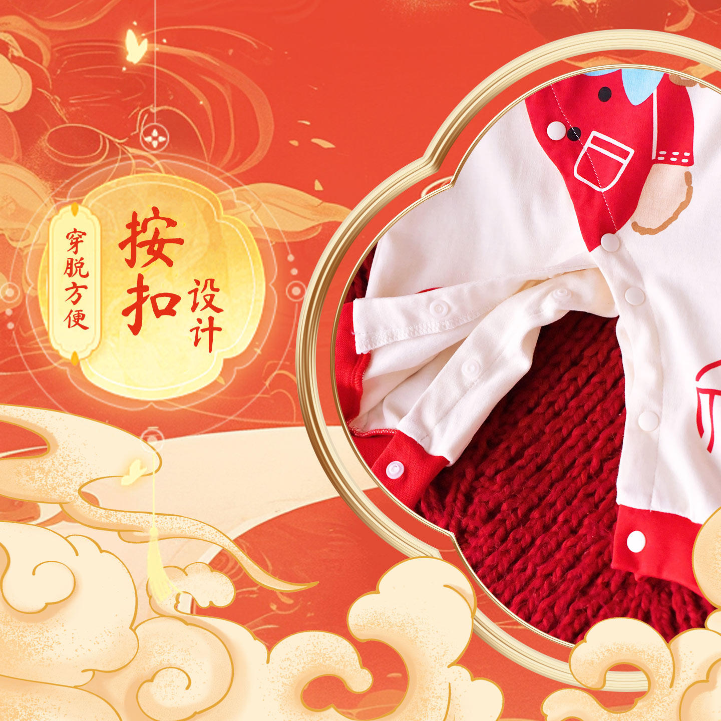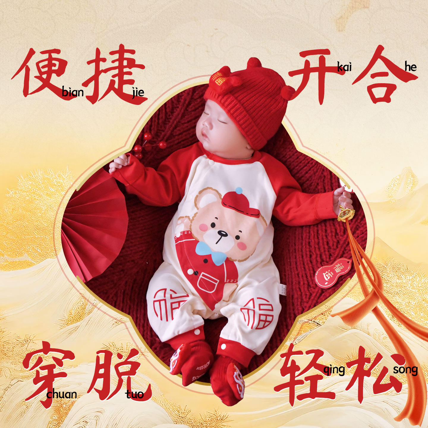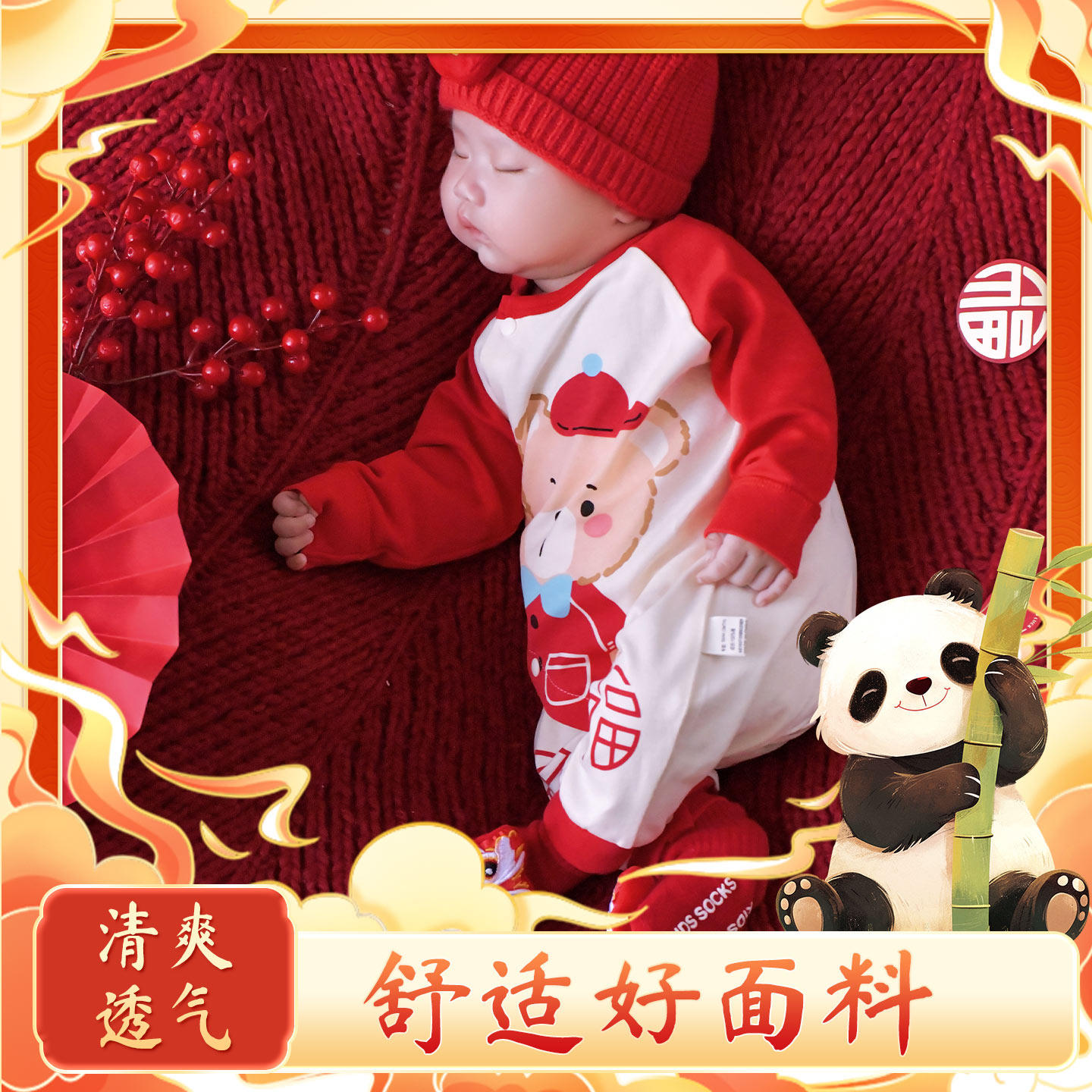 婴儿长袖连体衣纯棉春秋款男女宝宝满月哈衣红色喜庆过年服百日宴