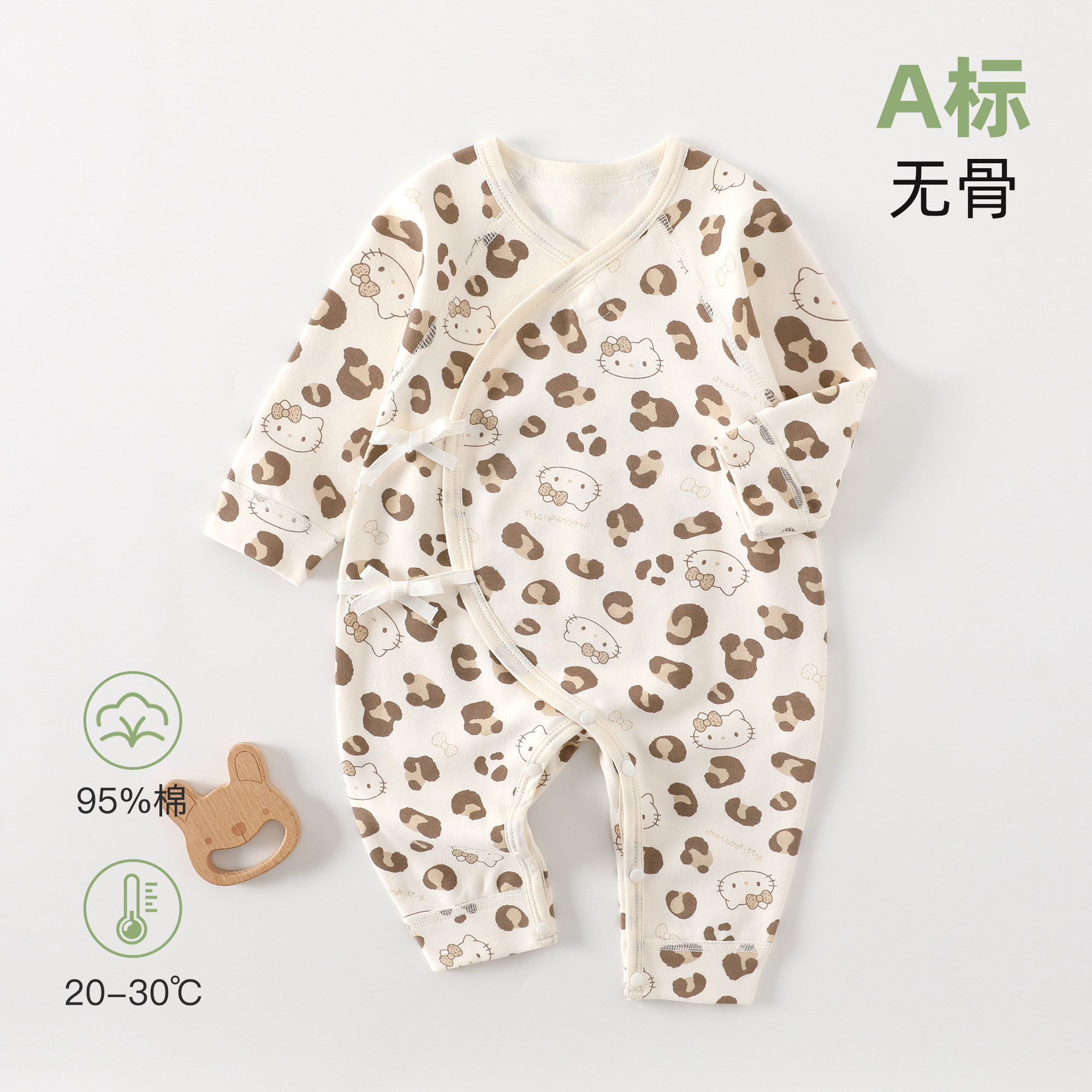 婧麒新生婴儿衣服a类舒绒春秋连体衣满月宝宝长袖偏开打底蝴蝶衣
