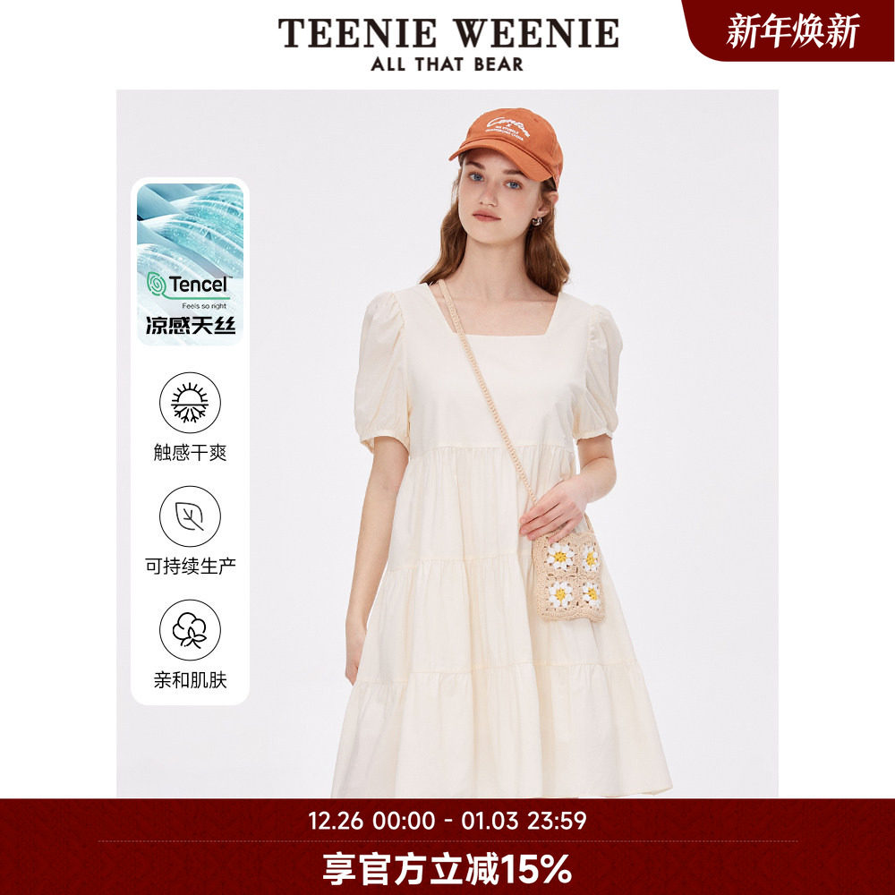 TeenieWeenie小熊奥莱浪漫法式方领公主连衣裙天丝气质女装夏