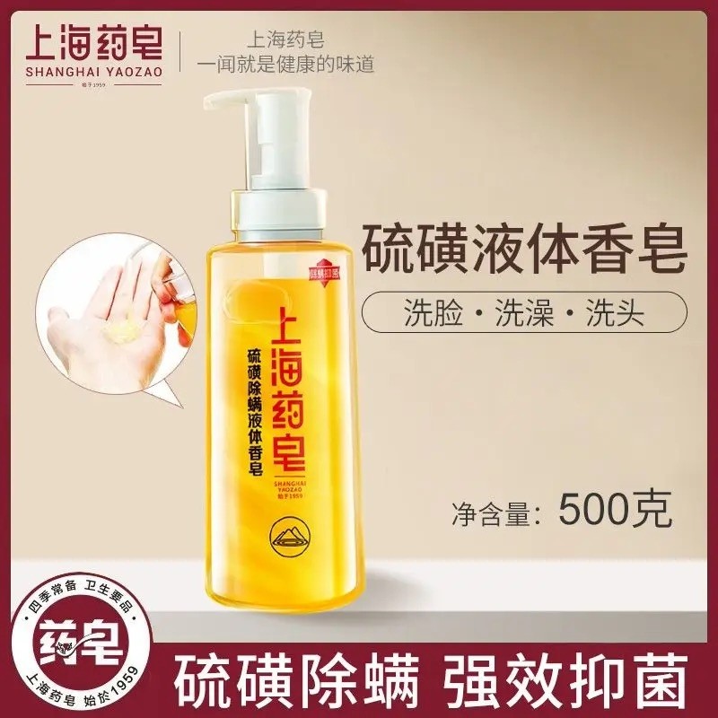 上海药皂硫磺除螨液体香皂硫磺沐浴露抑菌后背痘洗头洗澡三合一