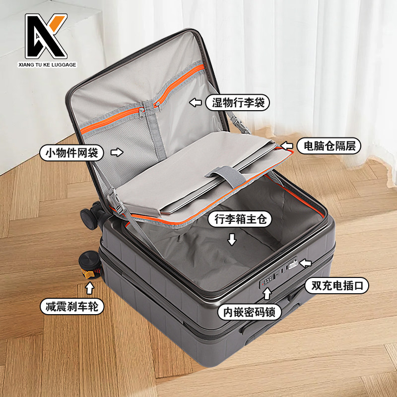 大容量深仓行李箱侧开盖拉杆箱学生旅行箱密码箱子结实耐用登机箱