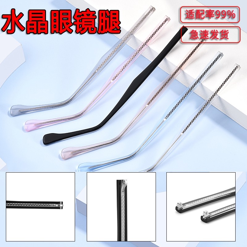 透明眼镜腿水晶脚一对通用眼镜架镜框配件镜腿脚替换工具更换金属