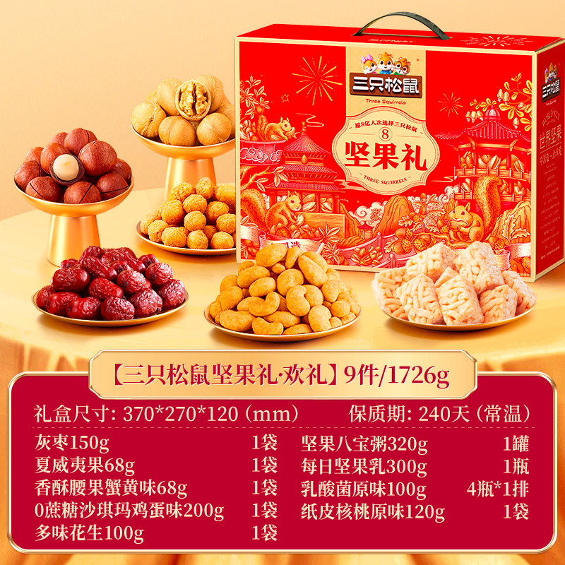 新年过年三只松鼠零食大礼包坚果礼盒送礼整箱混合干果年货团购