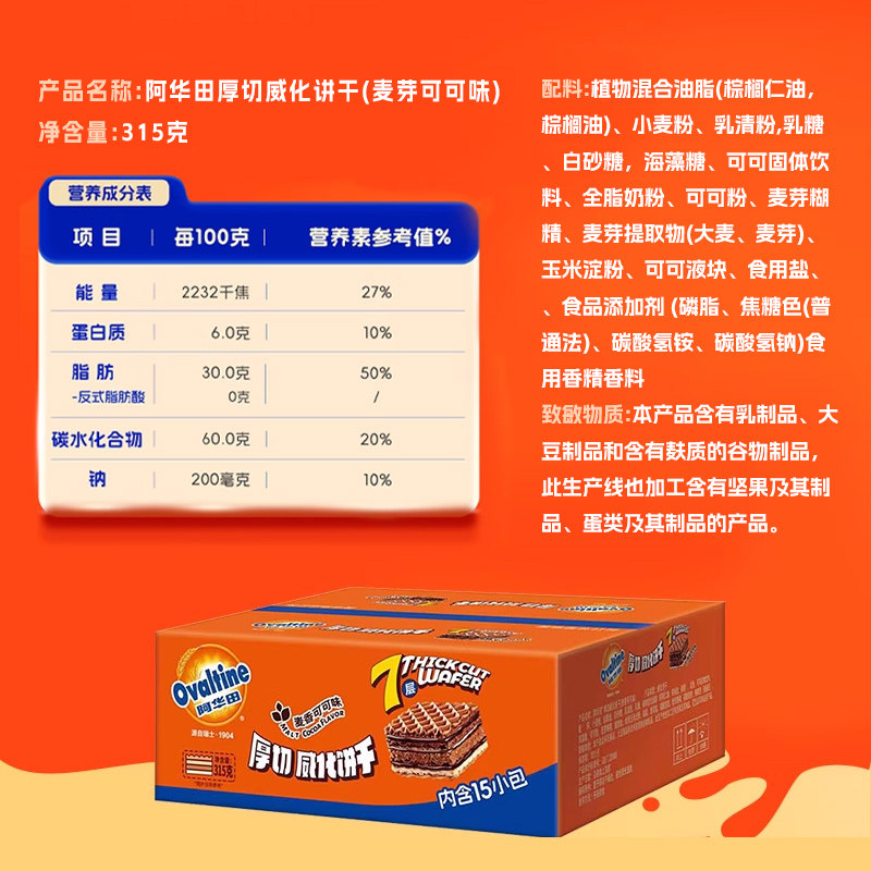 阿华田可可7层厚切威化饼干联名夹心休闲迎六一儿童节零食早餐