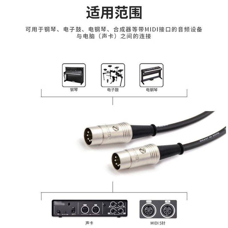 佳耐美音频线五芯DIN插头连接线NYS322电子鼓钢琴键盘MIDI数据线