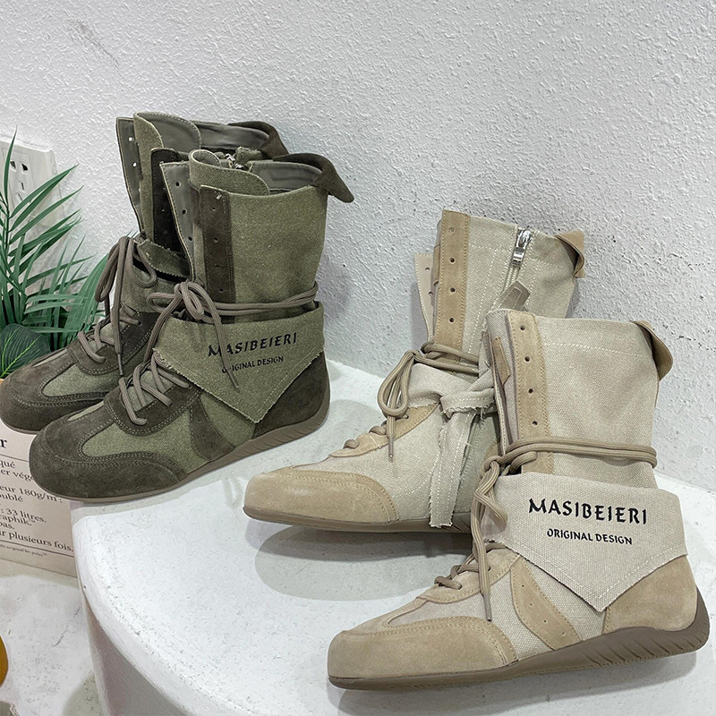 2025新款厚底短靴女秋季外穿中筒马丁靴复古内增高废土风工装靴女